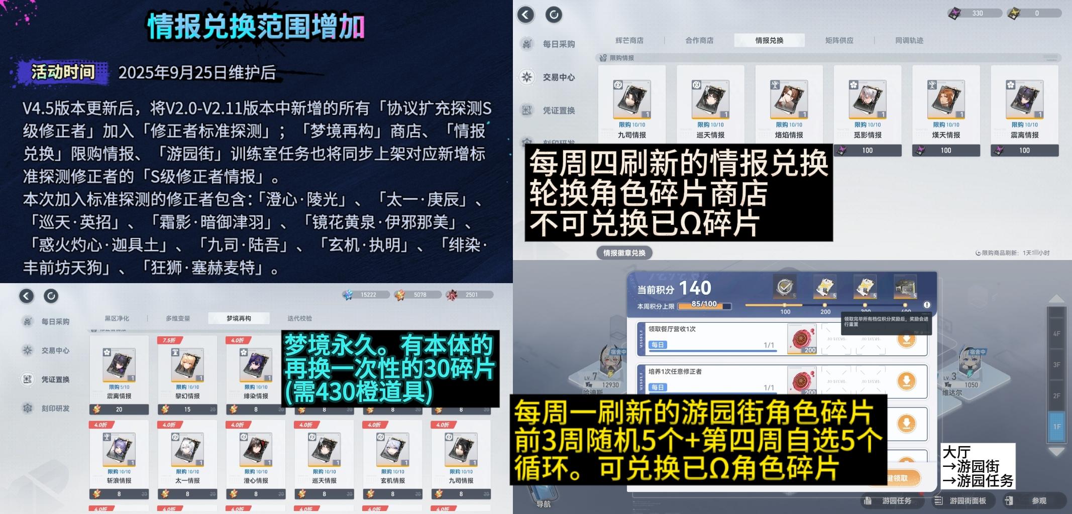 本次4.5版本将托特之前蓝票角色全部转到标准探测(黄票)池。黄票池角色将新增对应碎片兑换渠道。梦境商店/情报兑换/游园街每周任务