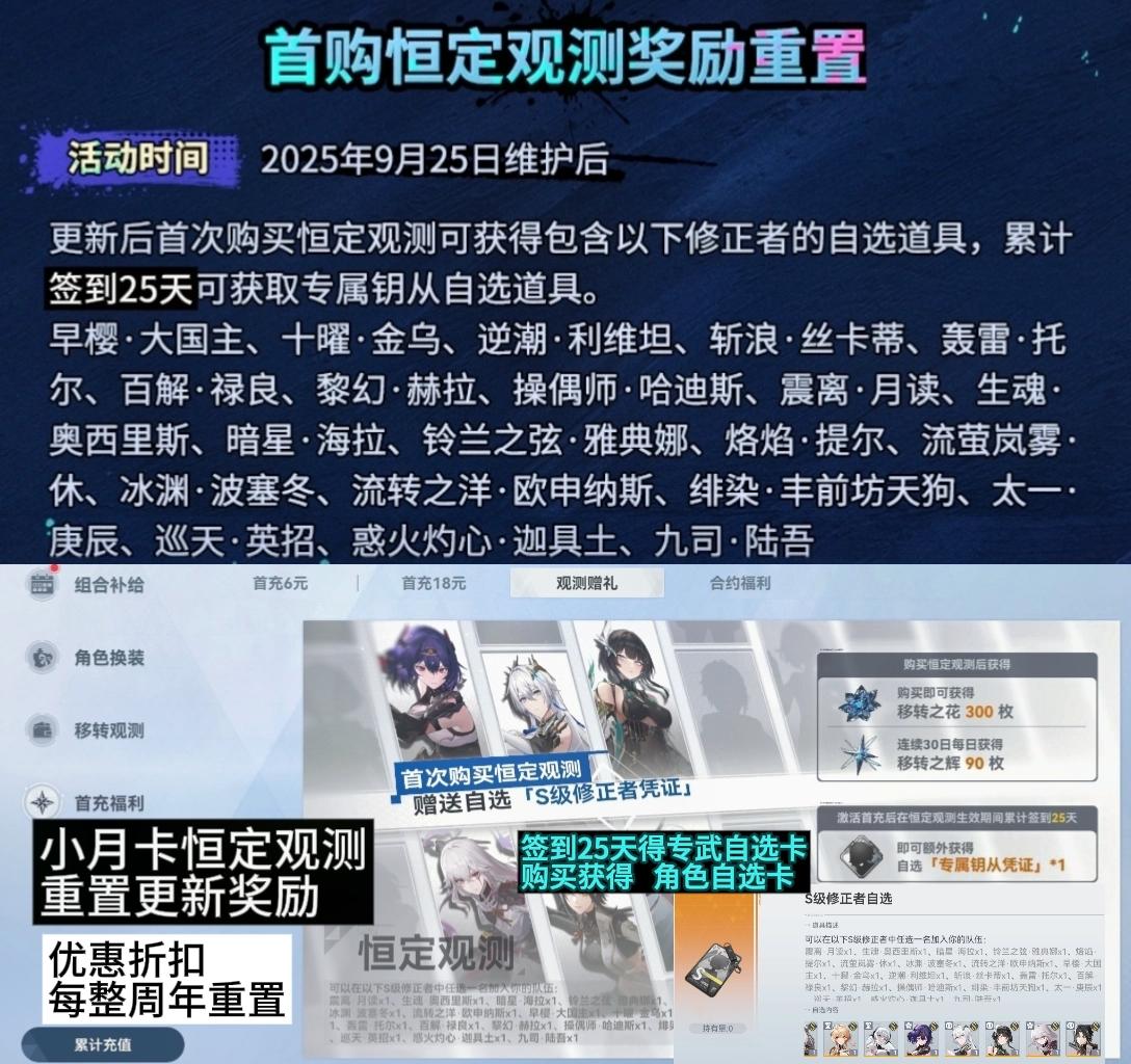 四:恒定观测(小月卡)奖励重置
