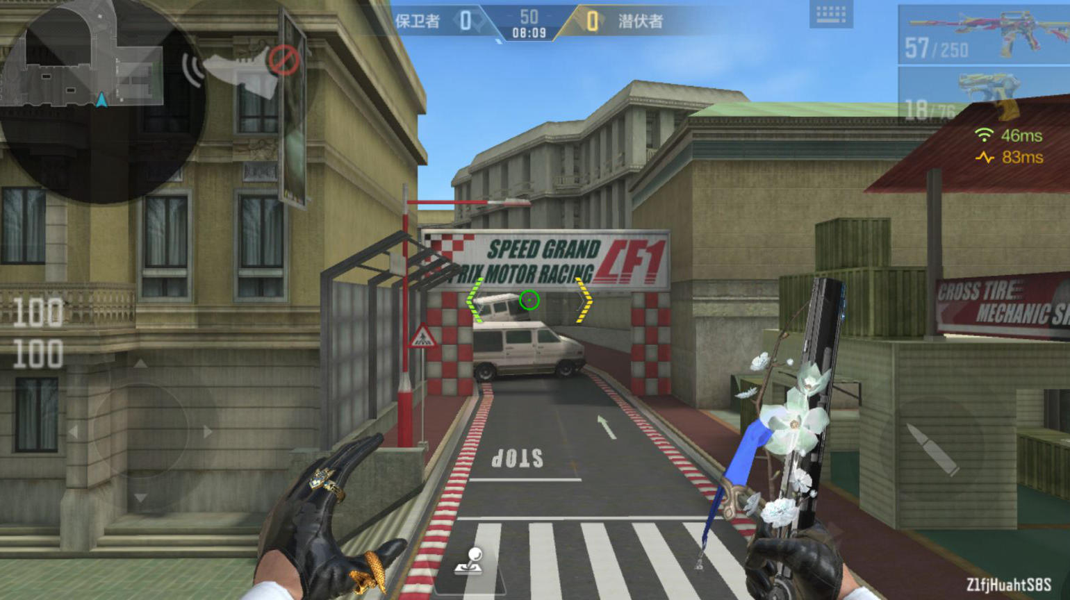选择使用步枪在侧道战斗非常正确,毕竟中路开阔不适合步枪突击。侧道赛道上摆放了很多汽车,这些掩体可以帮助我们较为顺利的进入侧道中段,随后可以占据房屋进行架点,不让敌人过点。