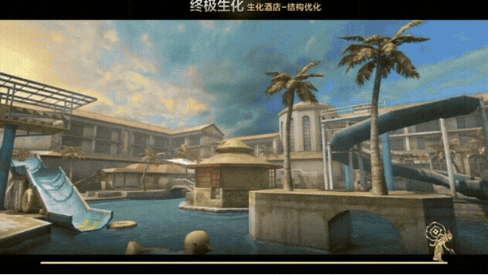 如果是追求极致伤害快感,则要留意【无限火力】和【人多势众】这类BUFF,二者搭配能让整体的火力伤害数值达到极致,不俗的伤害搭配无限备弹,绝对让幽灵寸步难行。比较推荐的地图有《生化酒店-结构优化》等。点位上,如生化酒店-结构优化里的角落房顶二楼,卡住椰树的通道后,妥妥的无敌。
