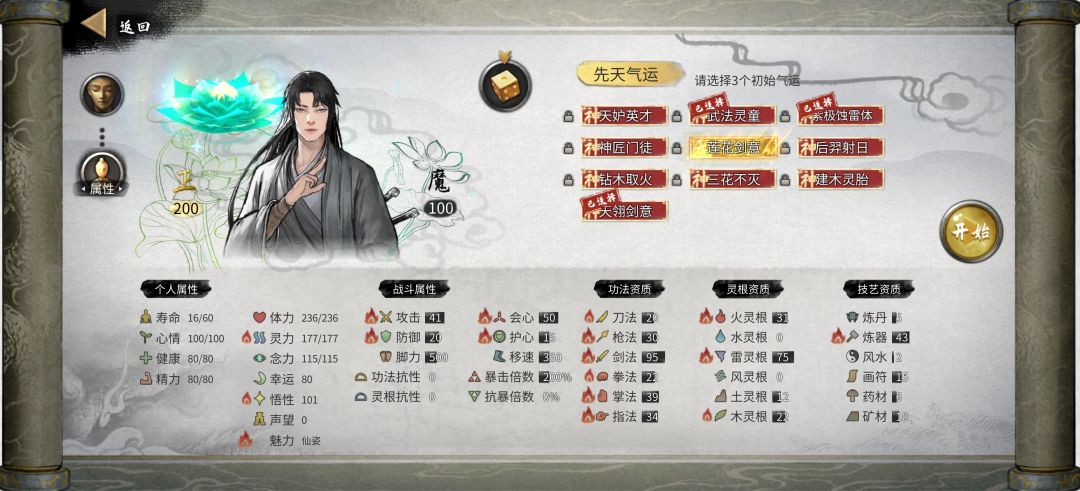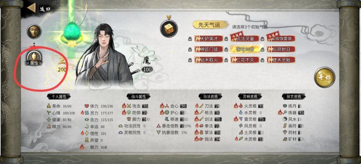 第六步:刷新自己想要的属性,生命,悟性等等,刷新后衣服天赋会隐藏,如图3