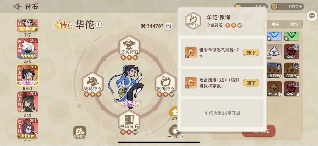 配饰位置:攻速符石+击杀单位回复怒气