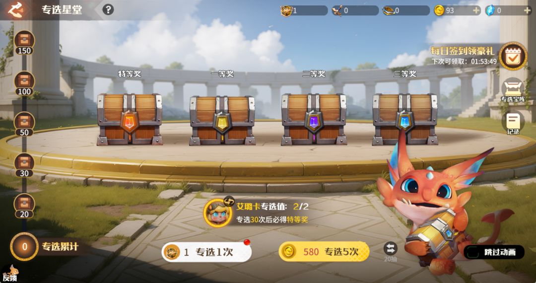 本次新增专选英雄艾璐卡,同时往期专选英雄限时返场。使用龙币(专选1次=120龙币,专选5次=580龙币)购买星堂钥石参与专选即有机会获得英雄、信物、意志之证、钥石残片等奖励。使用意志之证可在活动专属兑换商店——专选宝库中兑换英雄专属龙石;使用钥石残片可兑换英雄邀请函、秘焰晶核等道具。活动期间,参与活动签到赠礼累计7天可领取星堂钥石*10。