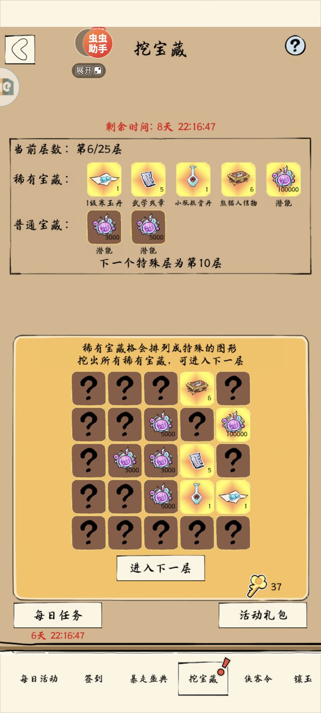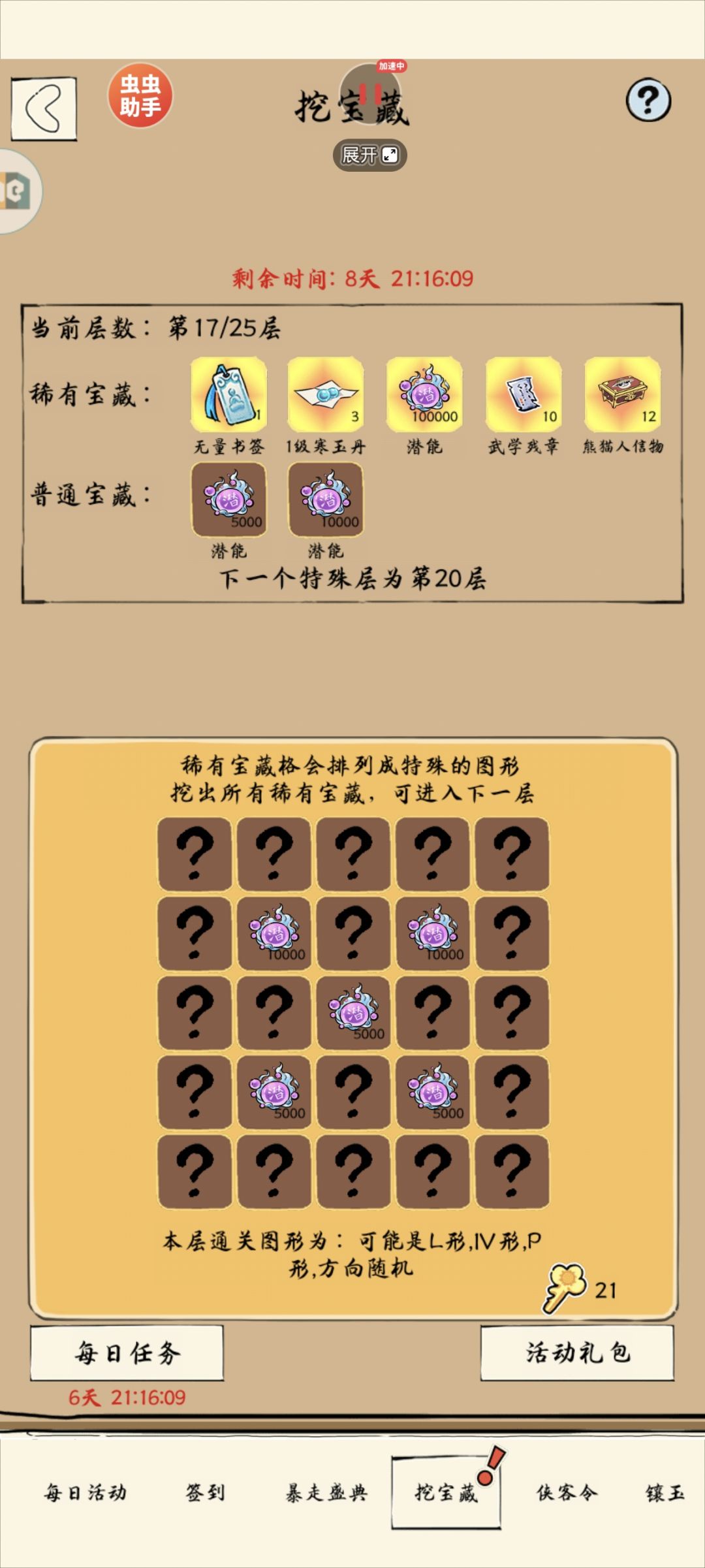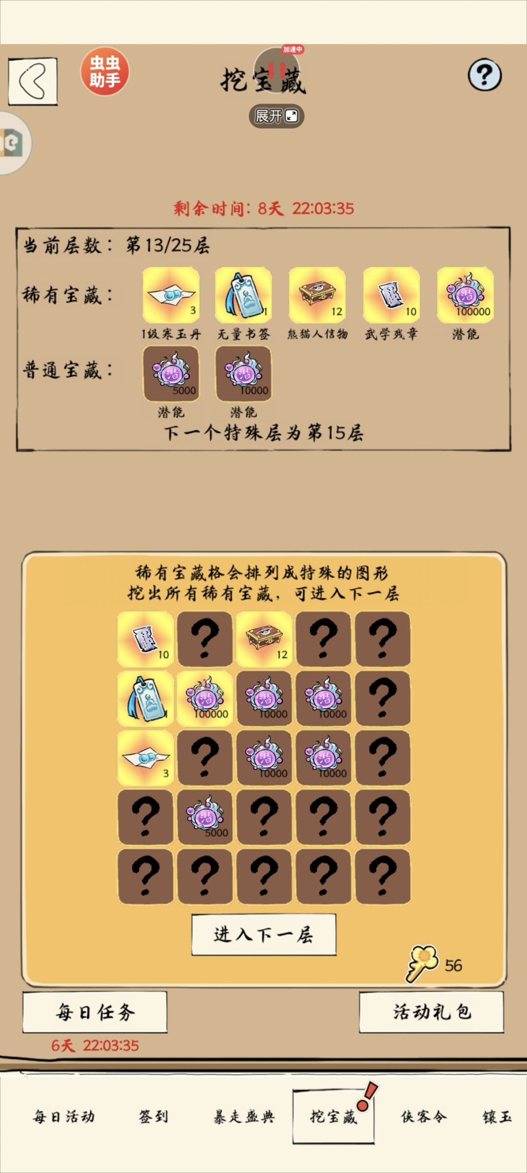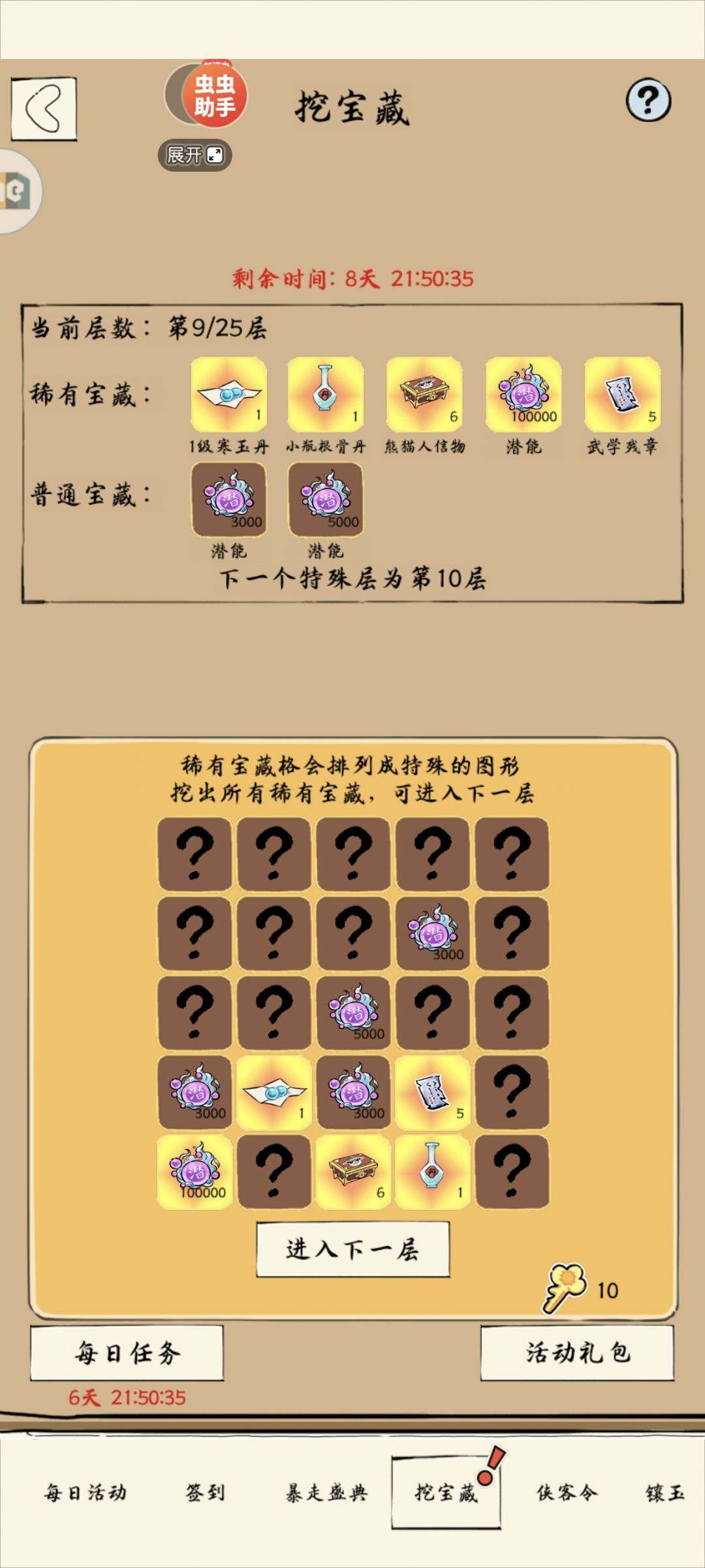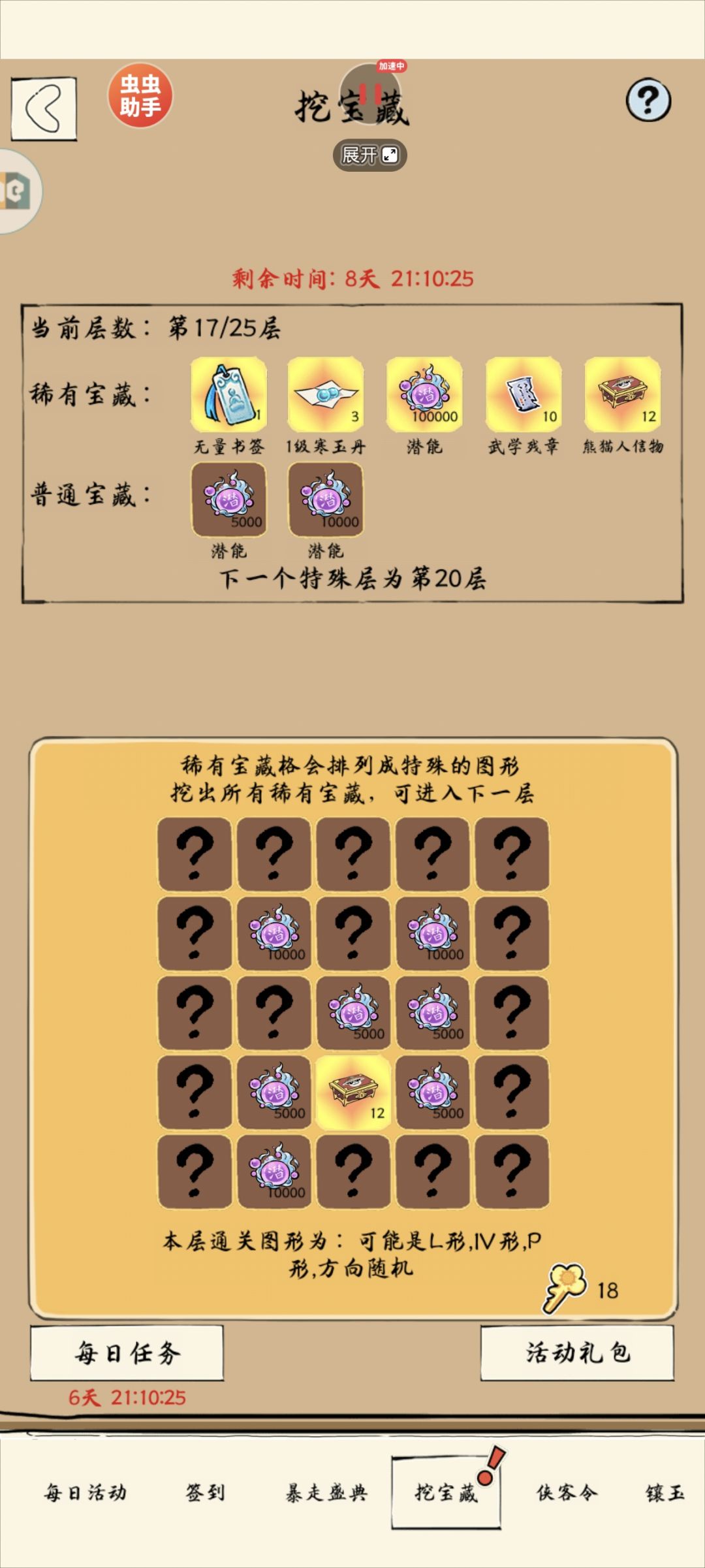 事情是这样的,某个萌新想要一套活动衣服,结果氪玩前面的小礼包(200金条 108元宝 680元宝 1880元宝)才发现,到25层5还差20个左右,结果又去买了328一档,等我走到十五层天塌了,衣服就在十五层!xf说调整了挖宝,我以为就把宝箱换成了衣服,没想到整这一手