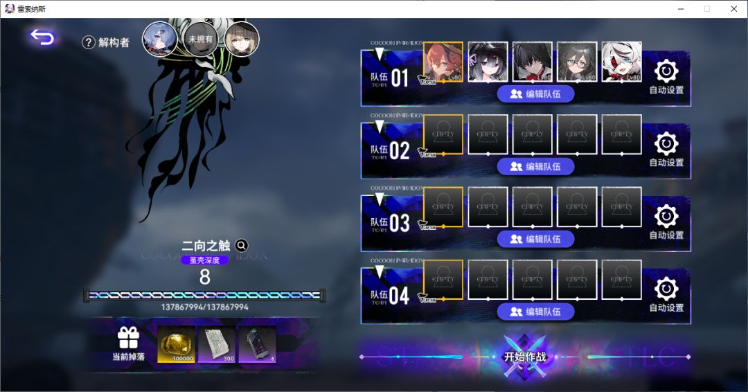 进去活动界面看到需要4个队伍,不用惊慌,实际上老登也是单队伍打完活动: