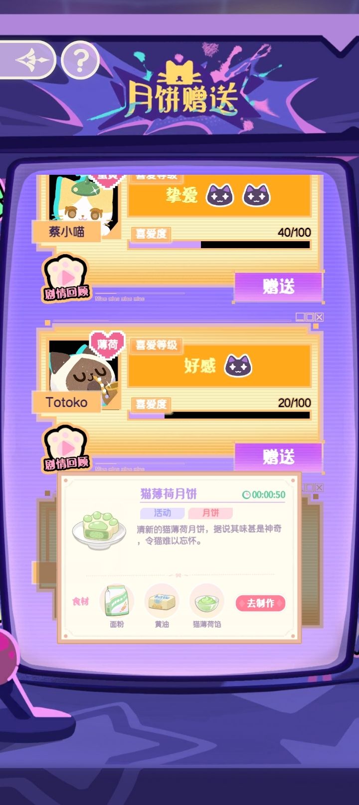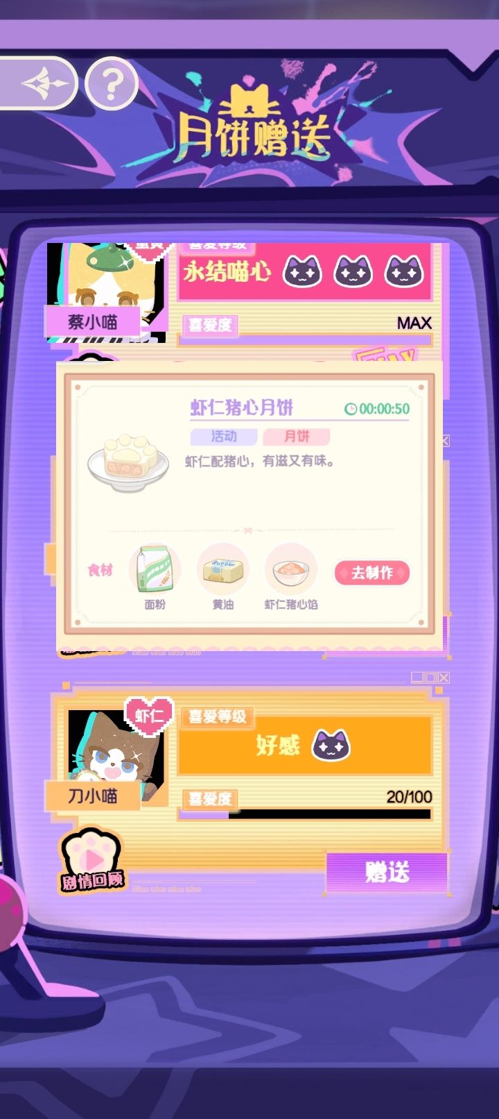 【好感】→【挚爱】→【永结喵心】