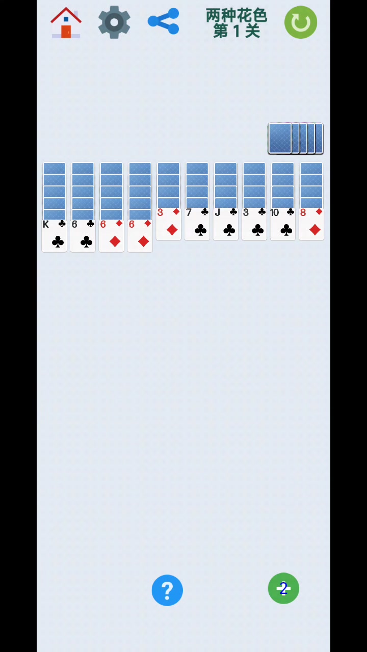 • 关键:只能将一张牌移动到比它大一点的牌下面(例如:红桃5可以移到红桃6下面),颜色不用交替。