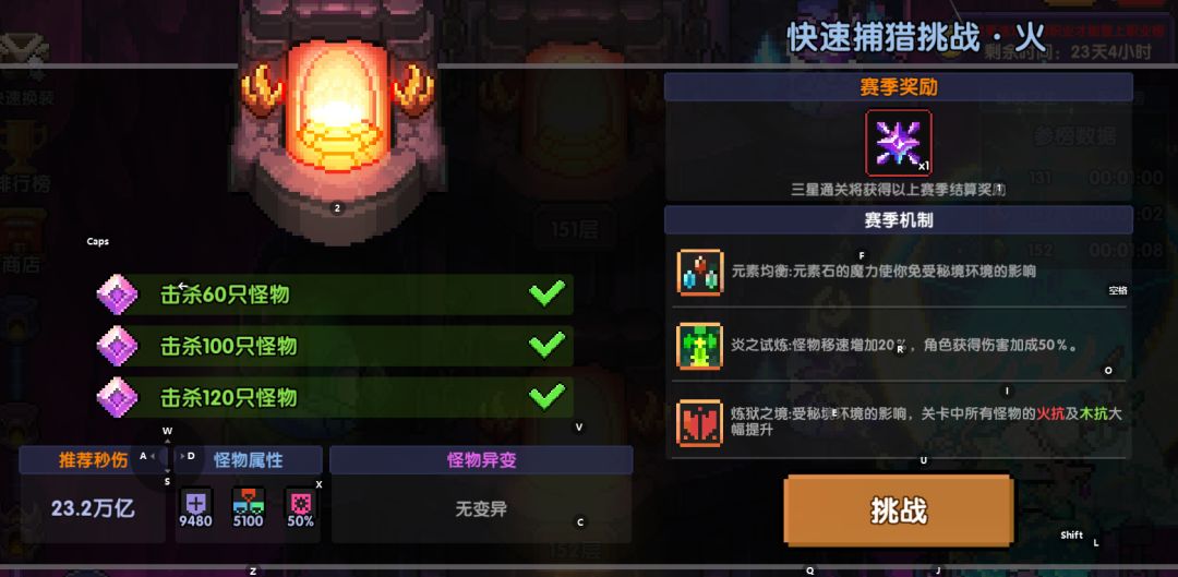 炎之试炼:怪物移速增加20%,角色获得伤害加成50%