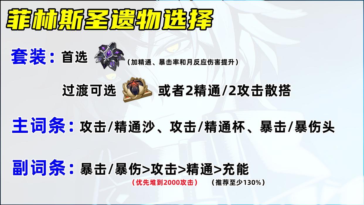 菲林斯培养攻略,主打月感电反应的站场型主C,圣遗物/武器/配队