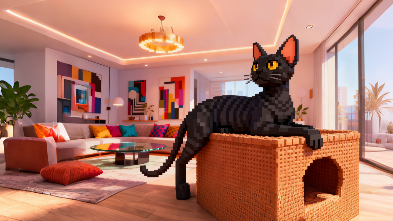 猫咪可以自定义姓名,每个房产内可容纳猫咪数量上限为2。猫咪可以在室内自由活动,玩家需要与猫咪交互打开属性面板查看属性,健康和毛色可以通过喂食鸡腿、罐头或猫粮等道具按食品类别提升,心情会每天降低数值,需要用逗猫棒或毛球等玩具提升。猫咪特征词条类举:黑/白手套、卷毛、墨镜等,每条特征购买猫咪后随机出现(最好特征可以反映到猫咪建模上)。可以在宠物店购买猫咪背包,可以解锁新动作——撸猫