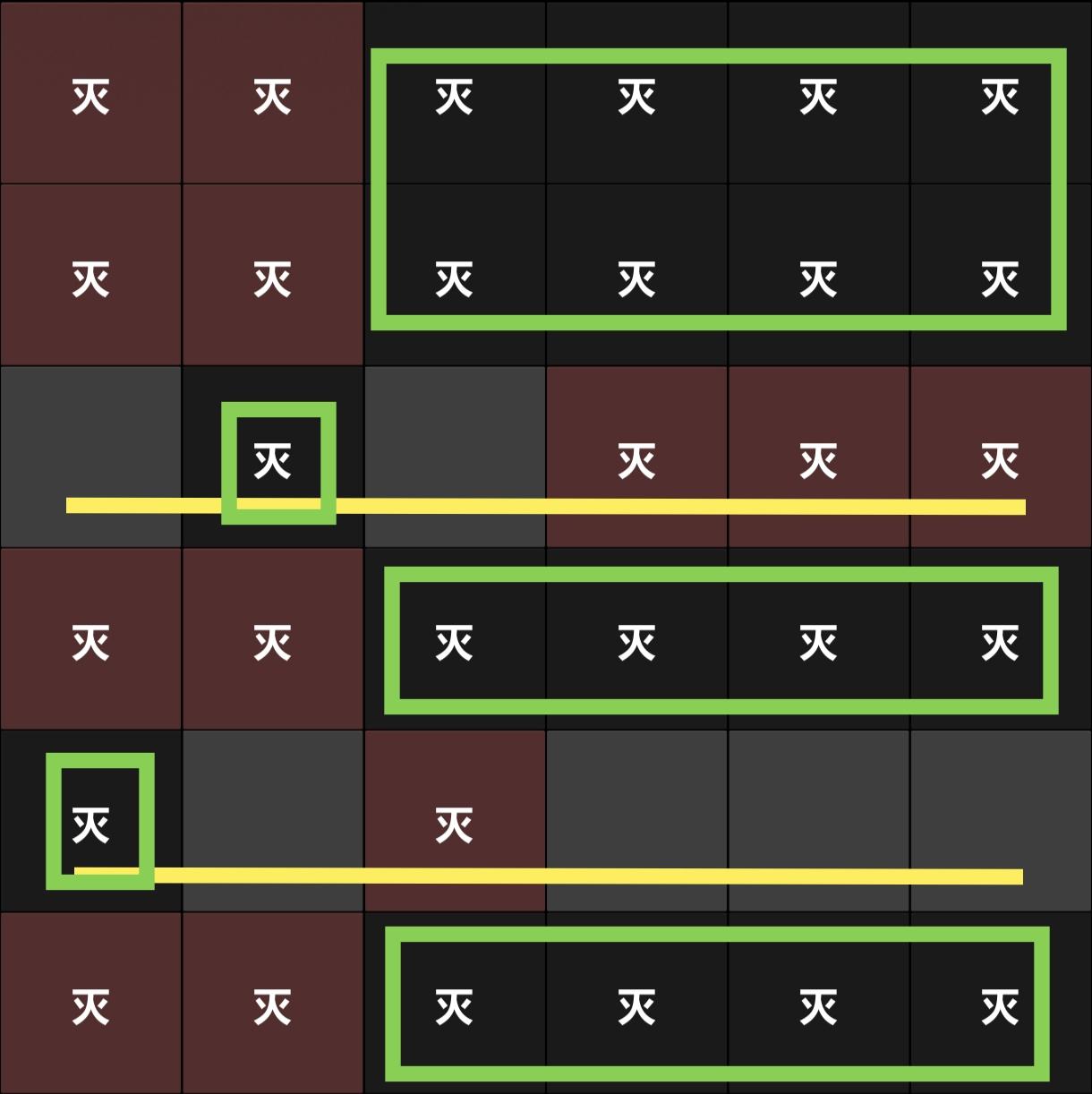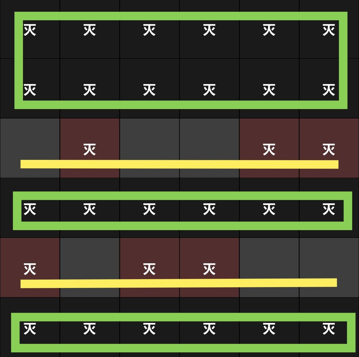 黄线两行缺口奇数互补,绿色为无关灯框出