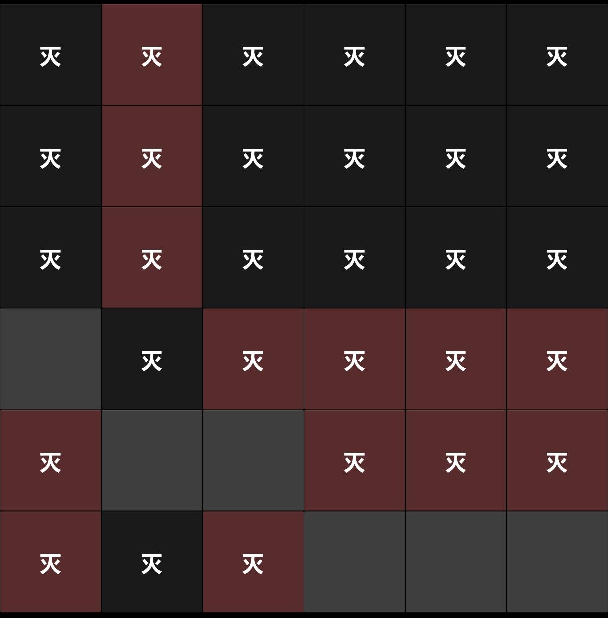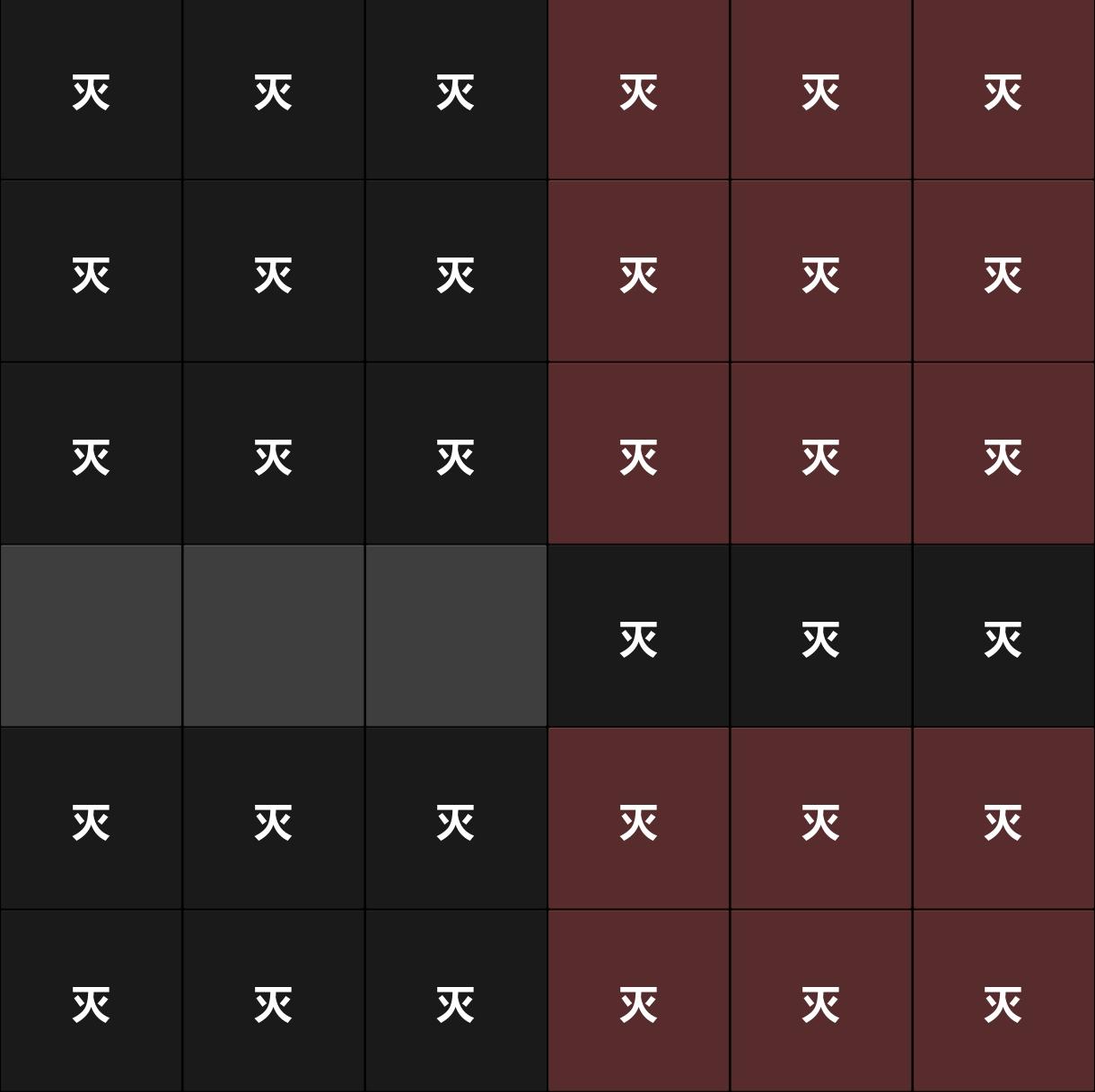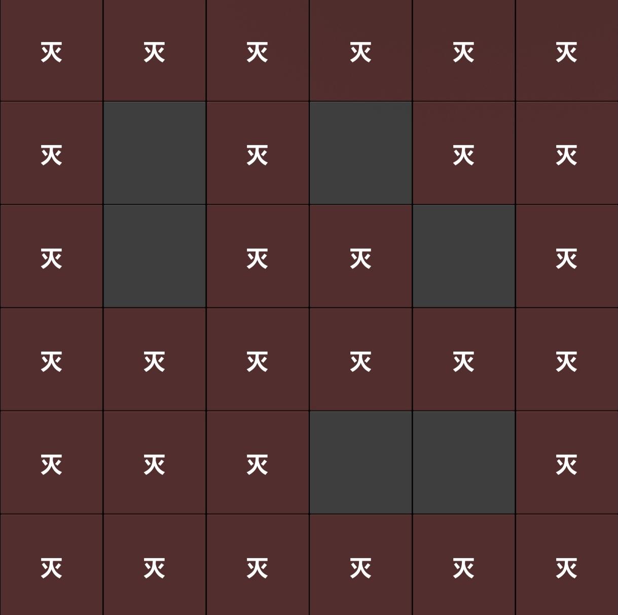 《点灯解密,特解技巧》中的技巧在灯的数量较少时非常好用,但在灯的数量变多后就没那么好用了。而本篇特别关注在灯的数量非常多的情况。在灯的数量很多时,那些没有灯的位置反而更加值得关注,本篇称其为“缺口”。由于游戏中满灯为6×6,本篇技巧也仅针对6×6,理论上4×4或其它偶数行列也适用。