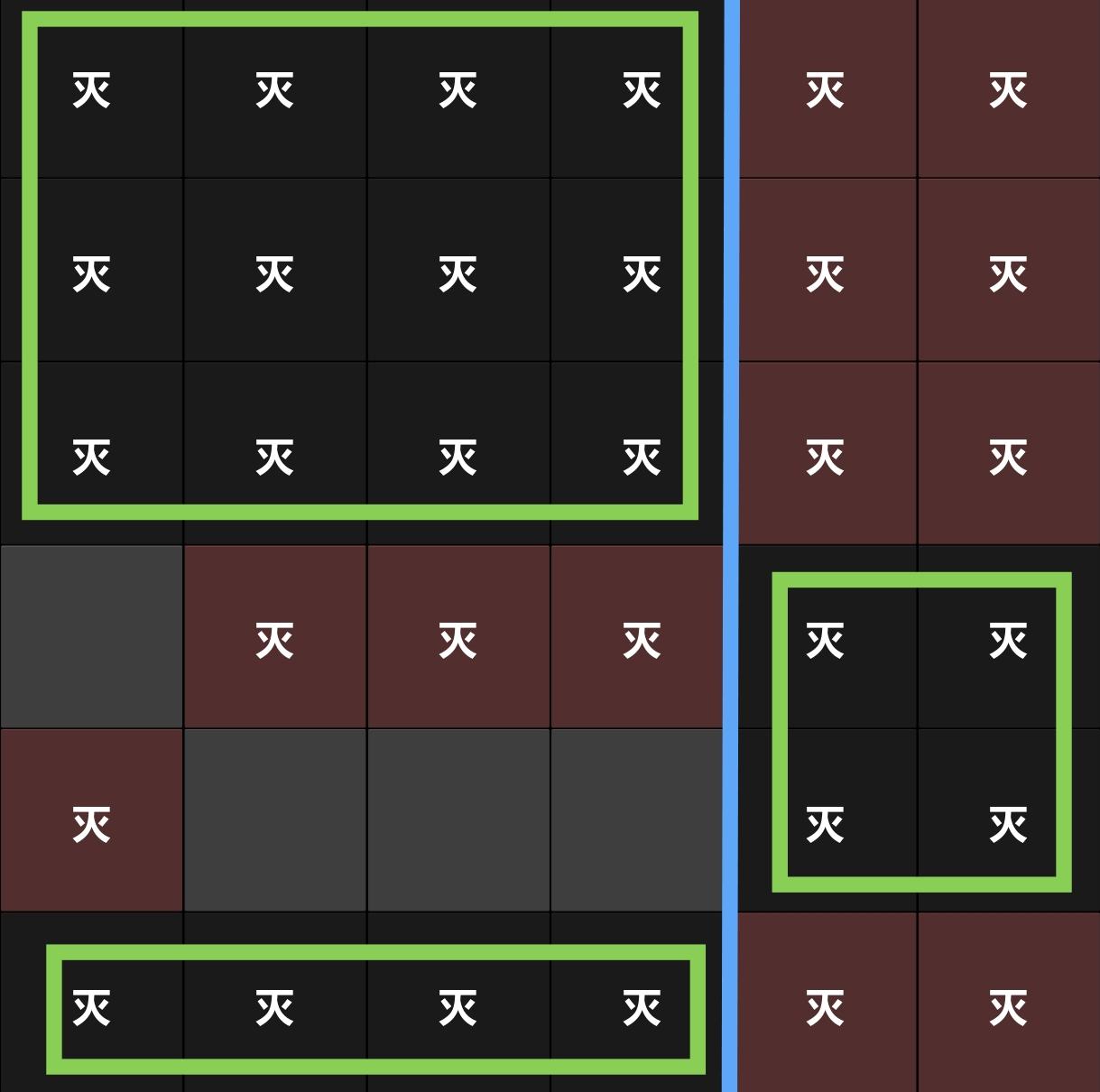 灯的行和列都只有一个缺口,且缺口都为孤点,则该灯必定操作。