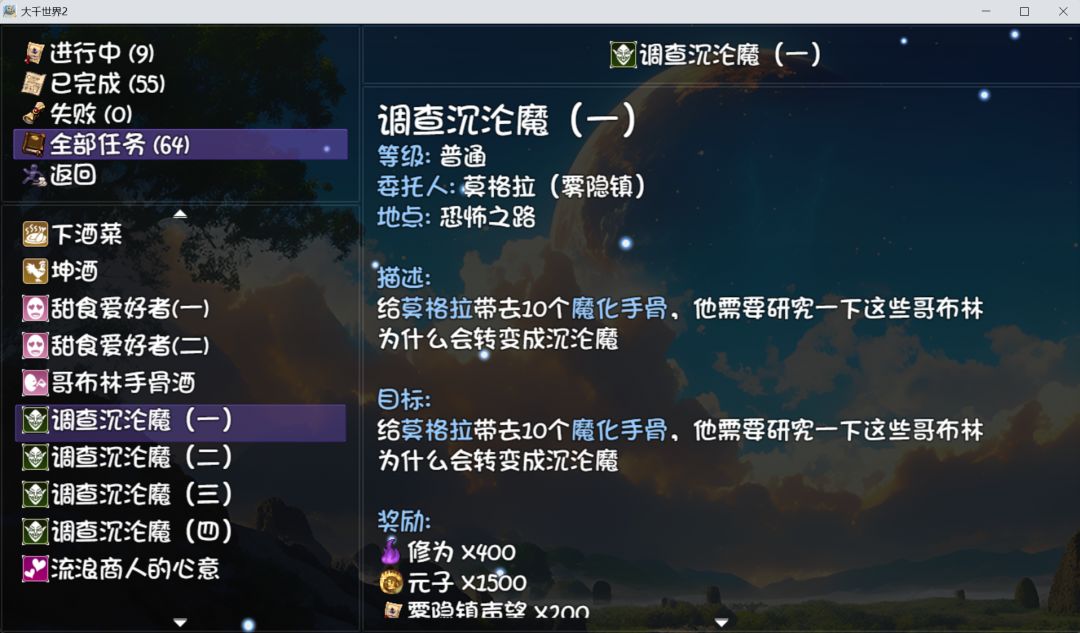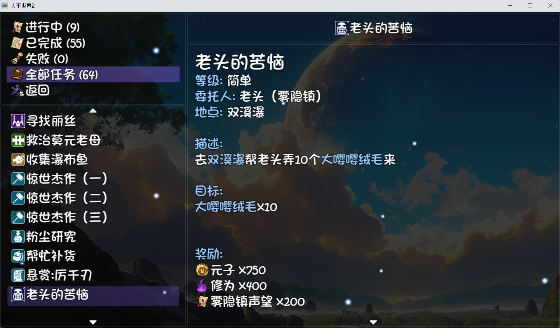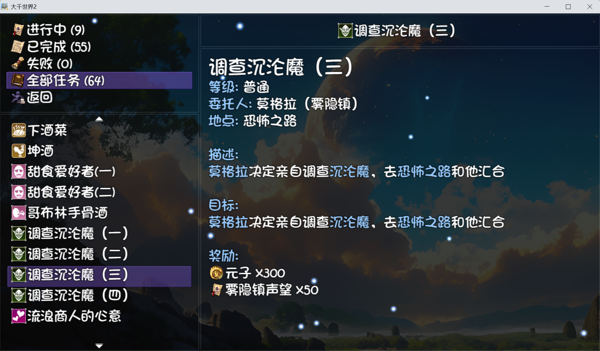 雾隐镇任务合集(涉及副本开启和角色入队)