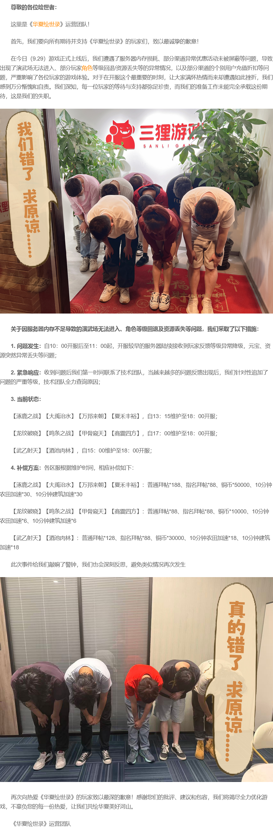 ”对于在开服这个最重要的时刻,让大家满怀热情而来却遭遇如此挫折,我们感到万分惭愧和自责。“