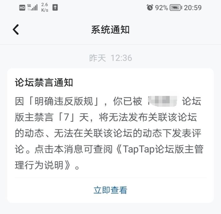 如上图,官方给的原因是因[明确违反版规],所以禁言你。你迷糊不?![[表情_疑惑]](https://img.tapimg.com/market/images/aa4357ae1c8077400ac415cfee3810d9.png)