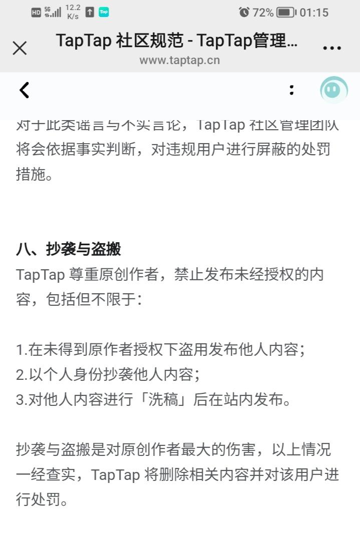 我这里要说明的是,tap里面99%的游戏是没有所谓的版规的,因为tap玩家管理条例已经足够适用于大部分情况了。