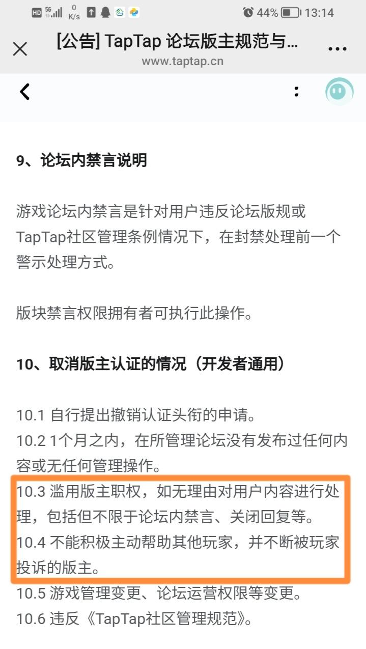 而版主,合理利用了[玩家在违反了论坛版规,或tap玩家管理条例的情况下]制定了特别的版规。