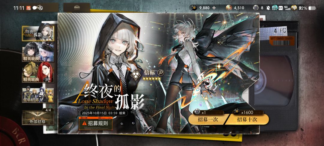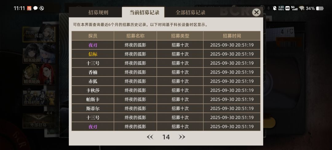 回归正题,如果是国庆入的坑,直接无脑抽限定池,不仅信标很强,就连陪跑五星夜刃也拥有不输六星的输出面板和各种机制,信标关键2或4拓(质变),夜刃关键3拓(三拓贴靠掩体+5能量),这两个都完全可以胜任输出位子