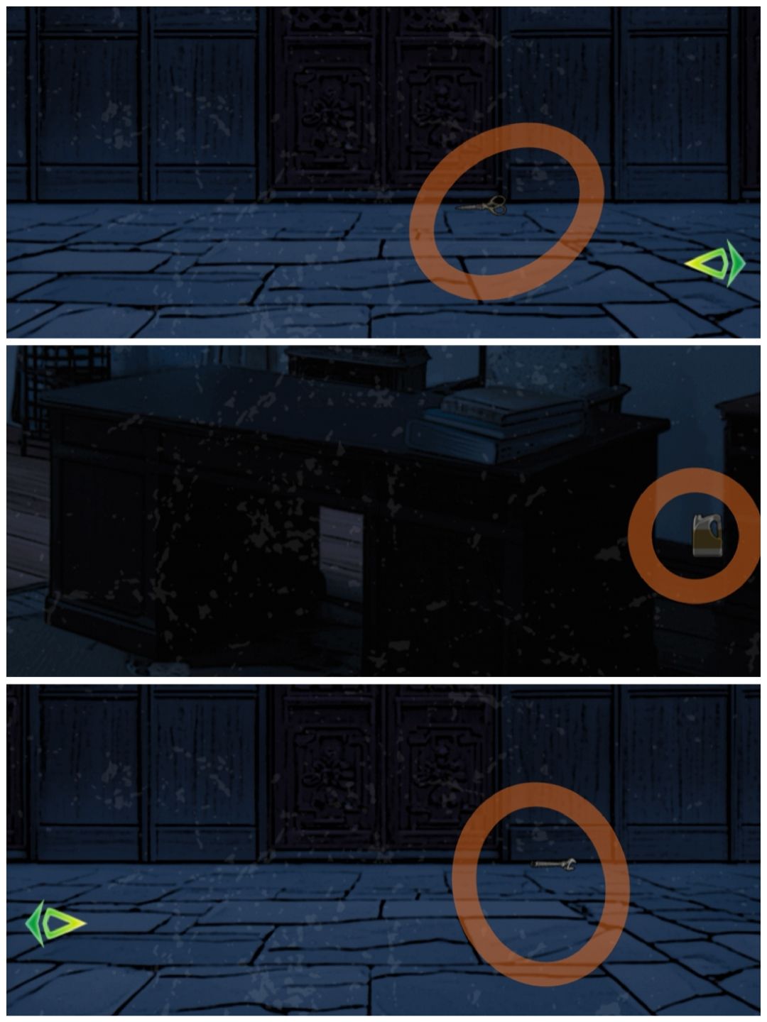 向右进入戏台下的房间,拿取窗台上的胶水和床上的珍珠耳环。
