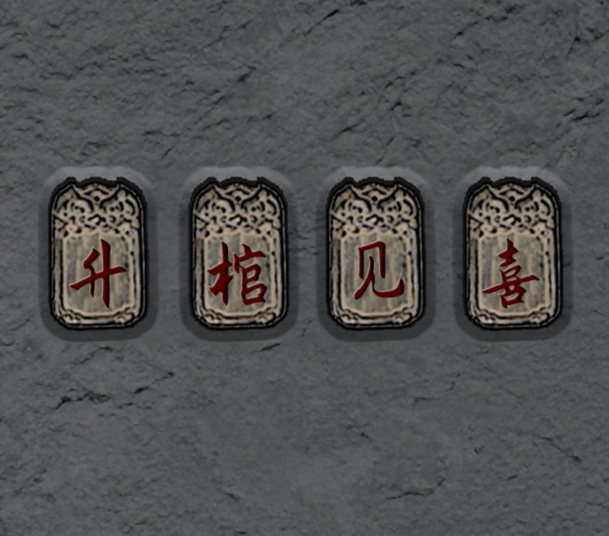 回到别雅园走中间来到水池,点击水池对面亭子下的凹槽,将收集的四个字牌按照升棺见喜顺序放上去,获得荷包和红鞋。