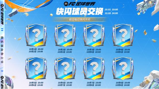 创始周年庆活动持续进行,快闪球员交换再度开启。10月1日-10月7日,每日10:00更新后将会限时开启一名球员的特惠定向交换,次日10:00结束。