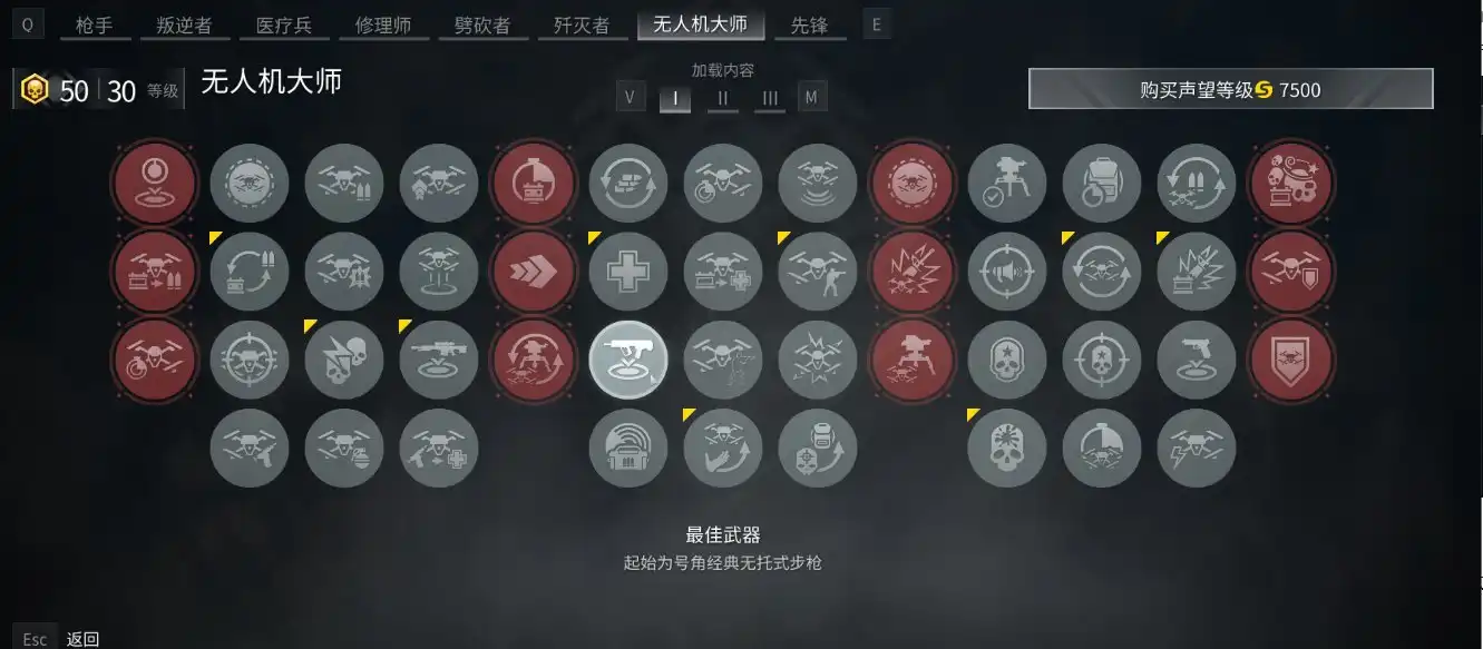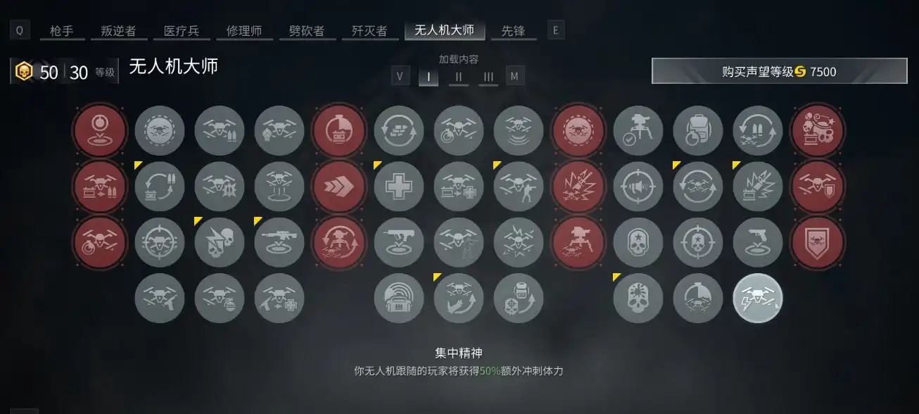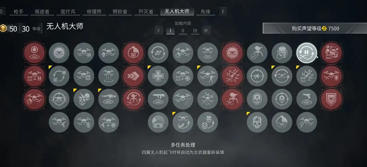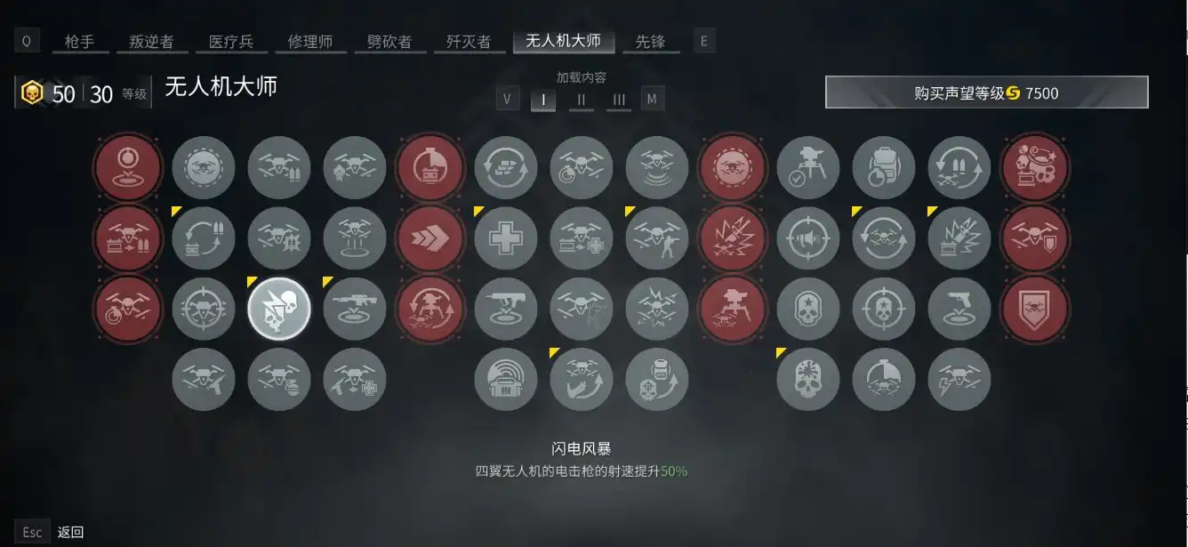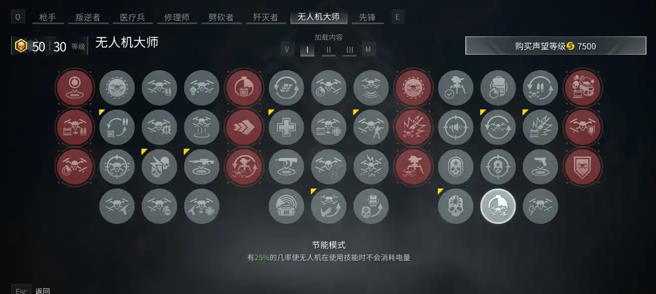 首先是对不同类型的无人机介绍。对于手枪无人机来说,能量消耗是基于杀敌数的。也就是说,哪怕你打了很多子弹才干掉一只怪,能量消耗依旧很少。电击枪无人机则不同,它的能量消耗是根据射击次数计算的,哪怕只有一只怪,如果你一直开火,电量也会迅速下降,特别是电特感消耗会更大。注射枪无人机的能量消耗则是根据注射次数来计算的,一旦注射完毕,无人机就会消失。接下来就是技能介绍充能提升可以让无人机使用更久,轻装作战也能提升,但后者有一定的负面效果。总体来看,无人机大师的技能大多是围绕无人机展开的。如果没有无人机,这个职业就几乎变成白板。因此,提高能量上限对无人机来说非常重要,所以我更推荐点轻装作战,尤其是手枪无人机。虽然会牺牲一些子弹,但能换来更长时间的持续作战。