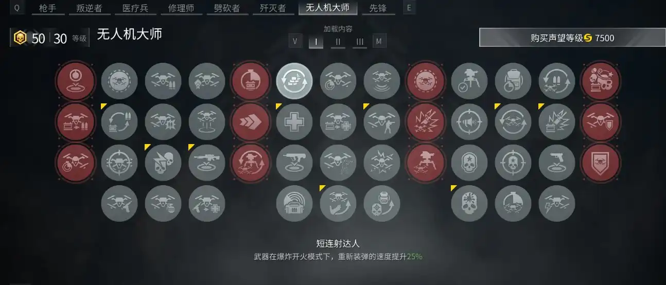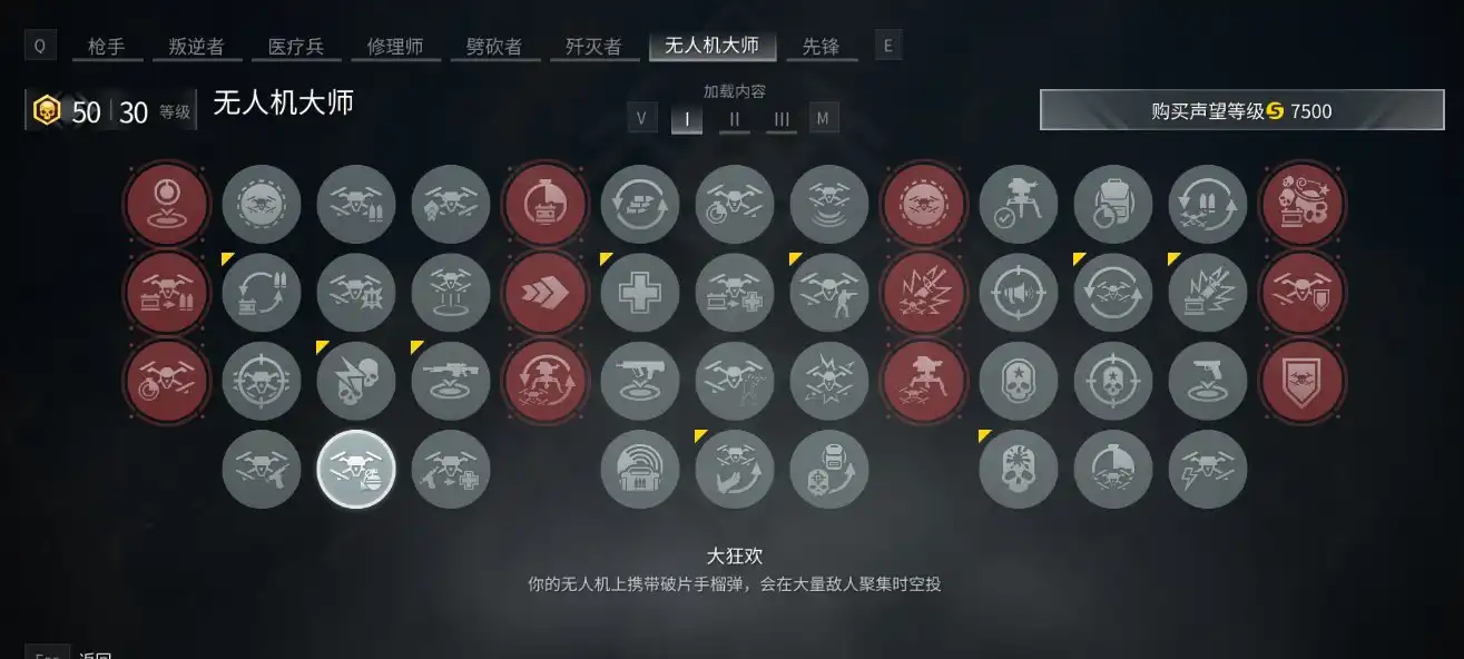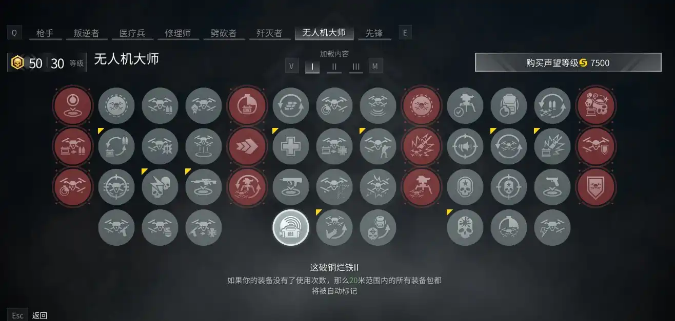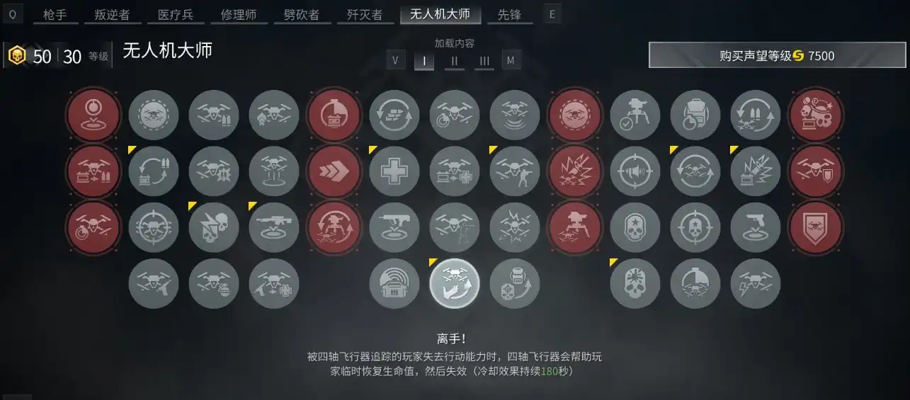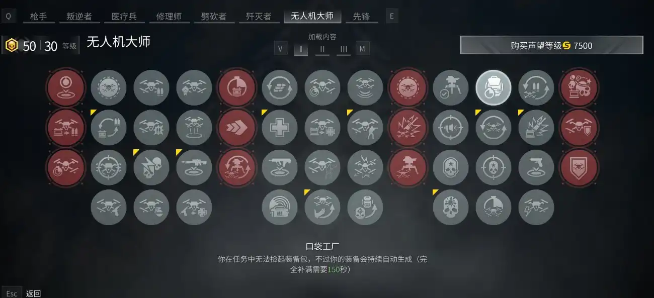 首先是对不同类型的无人机介绍。对于手枪无人机来说,能量消耗是基于杀敌数的。也就是说,哪怕你打了很多子弹才干掉一只怪,能量消耗依旧很少。电击枪无人机则不同,它的能量消耗是根据射击次数计算的,哪怕只有一只怪,如果你一直开火,电量也会迅速下降,特别是电特感消耗会更大。注射枪无人机的能量消耗则是根据注射次数来计算的,一旦注射完毕,无人机就会消失。接下来就是技能介绍充能提升可以让无人机使用更久,轻装作战也能提升,但后者有一定的负面效果。总体来看,无人机大师的技能大多是围绕无人机展开的。如果没有无人机,这个职业就几乎变成白板。因此,提高能量上限对无人机来说非常重要,所以我更推荐点轻装作战,尤其是手枪无人机。虽然会牺牲一些子弹,但能换来更长时间的持续作战。