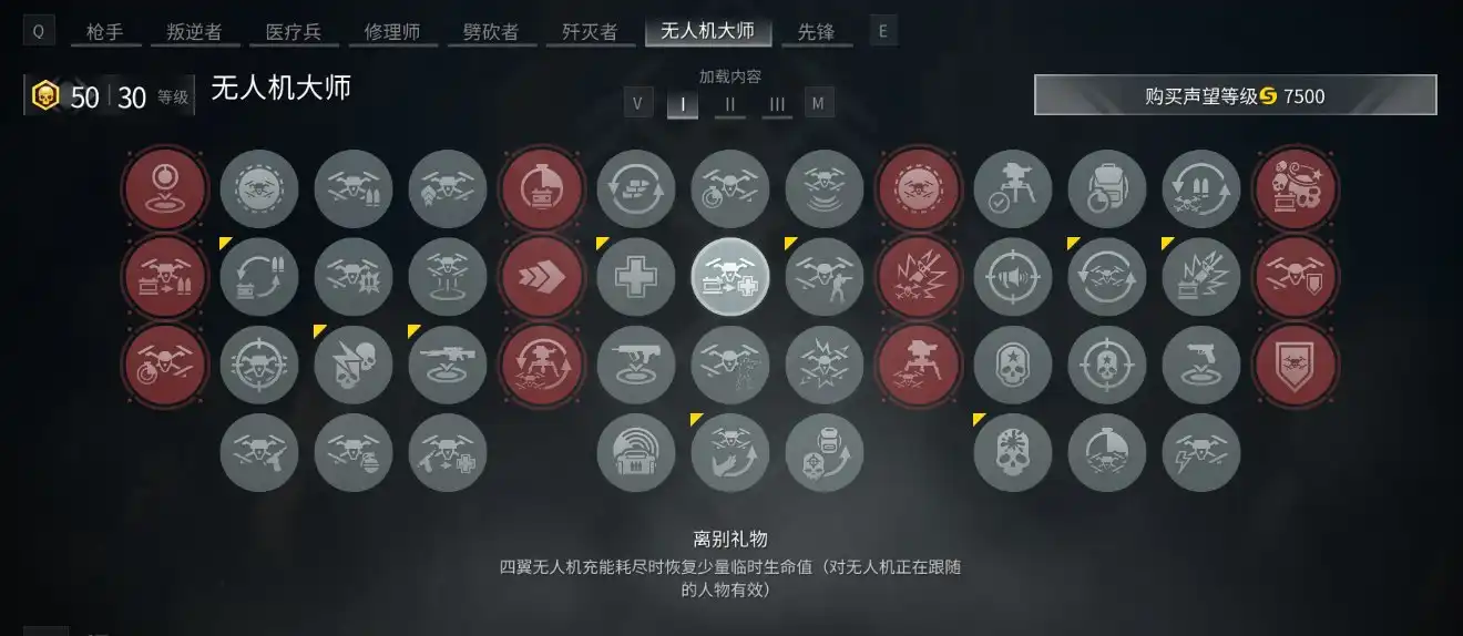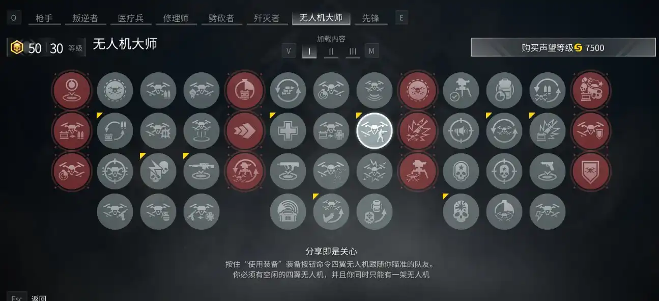 分享即是关心,非常强力的技能,可以让其他职业也获得无人机技能的加成,增加了队伍的上下限。带着是个不错的选择