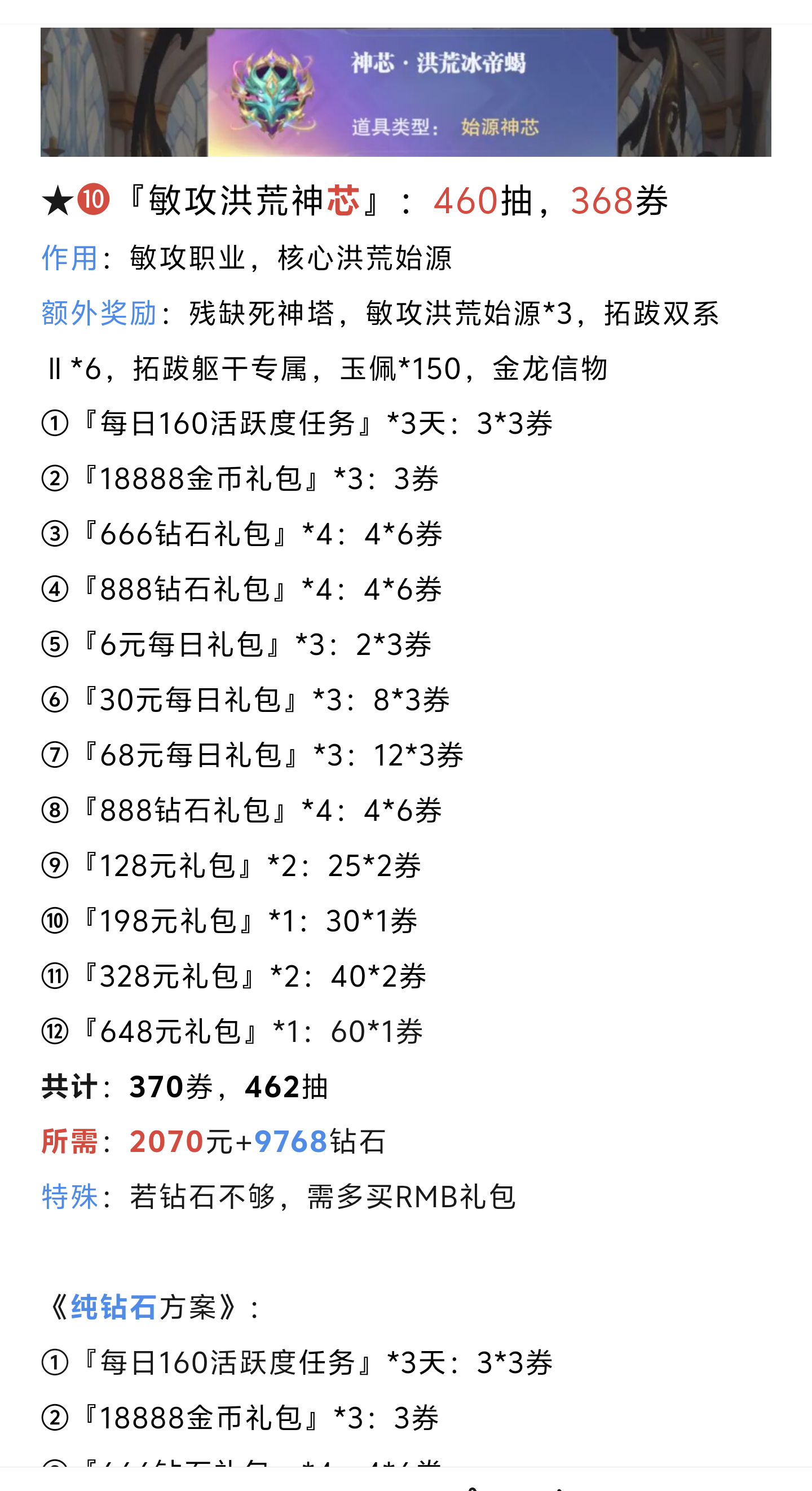 国庆8大活动,敏攻洪荒神芯,始源,金龙信物,拓跋双系Ⅱ,拓跋躯干专属
