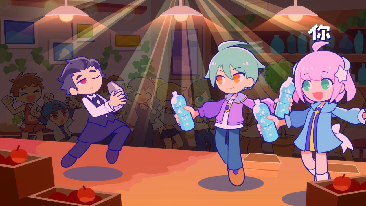 也就是游戏开始的碳酸喷雾大赛内容,根据旁边小伙伴的音乐节奏动作,记住对方的动作节奏,自己跟着一起重复,喷洒汽水时确实非常的有趣。