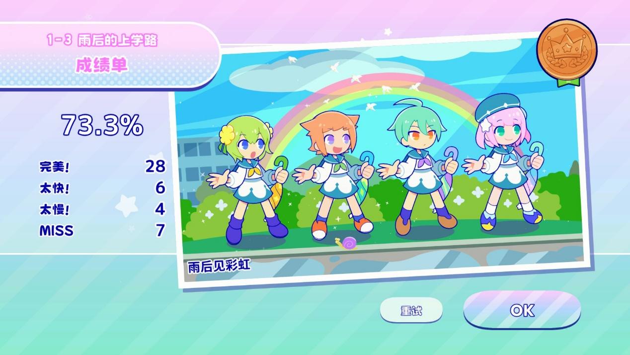 每个故事章节都会有四个游戏,也就是总共有16关,但成就会需要玩家每光都白金才行,还是非常有挑战性的,只可惜游戏流程并不是很长,一周目只要2小时就行,剩下的就是冲击全成就了,但游戏无论音乐还是画面我个人都非常的喜欢,有不少角色都画的非常可爱。