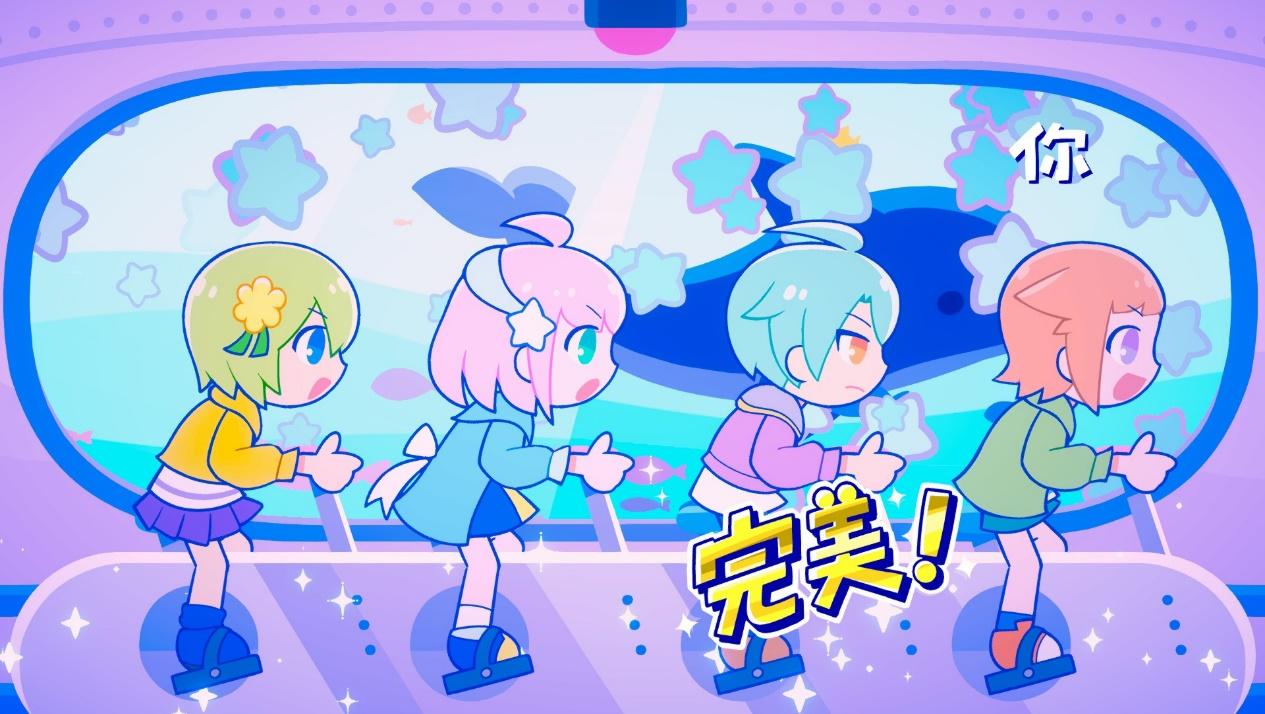 在雨后彩虹、海上钓鱼、篝火烧烤等一些场景的游戏,都是类似的玩法,玩家需要根据前三位小伙伴的节奏来按下按键,以此会从前到后有顺序的节拍,而在有时会需要集体四人一起大合拍。