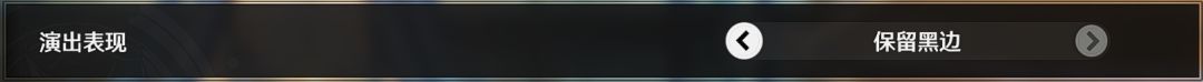 有“全屏”和“保留黑边”两种。由于过场动画、演出的制作可能和设备分辨率不同,因此需要做出相应调整。全屏是截掉超出屏幕的部分,沉浸感较好但部分画面会丢失。保留黑边则是把全部内容显示,空白部分用黑色填补,可能会让剧情演出部分比较突兀,但是可以观看到完整画面。对于16:9的屏幕比例,两种设置是一样的