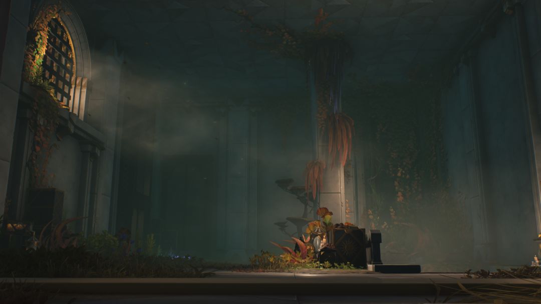 阴影质量低,可以看到画面外雕像的阴影甚至缺失了