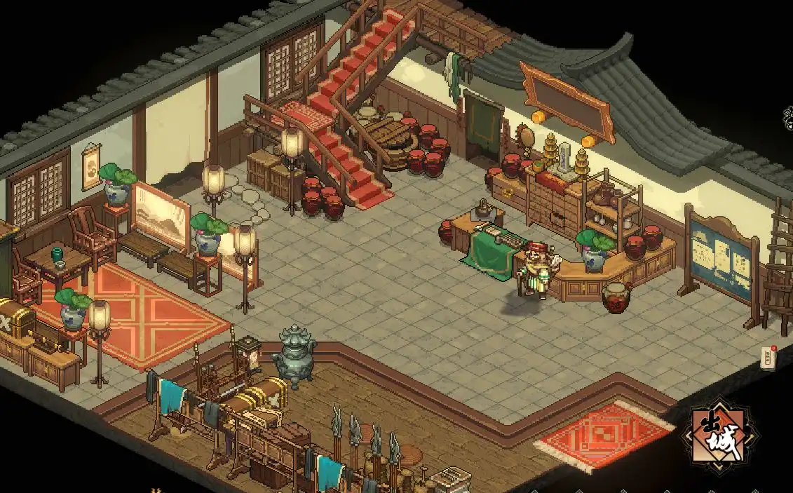 市集场景采用“青石板路+木质摊位+古风灯笼”的像素组合,地面纹理模拟传统砖石拼接,摊位招牌手写字体还原市井烟火气;黑店内部的楼梯、货架、陶罐等设施比例协调,光影通过色块分层表现立体感,相信有不少偏爱像素风的兄弟们会喜欢。
