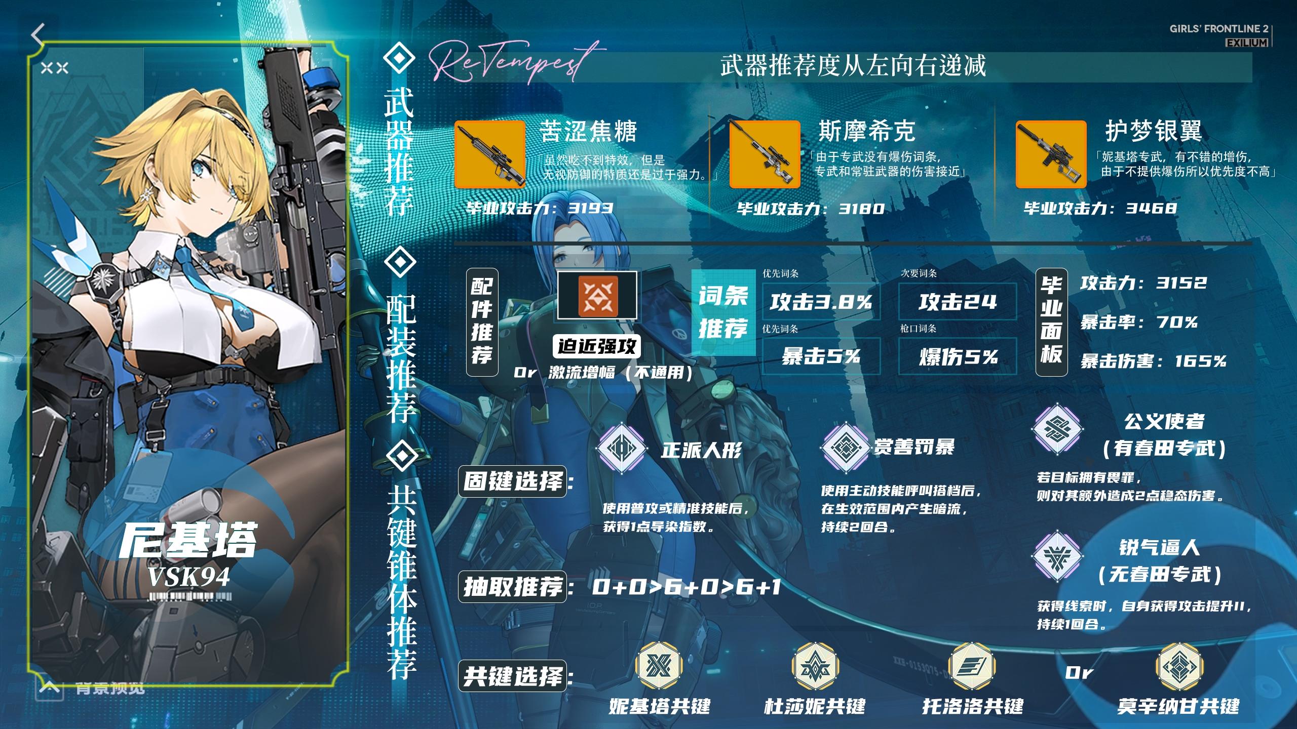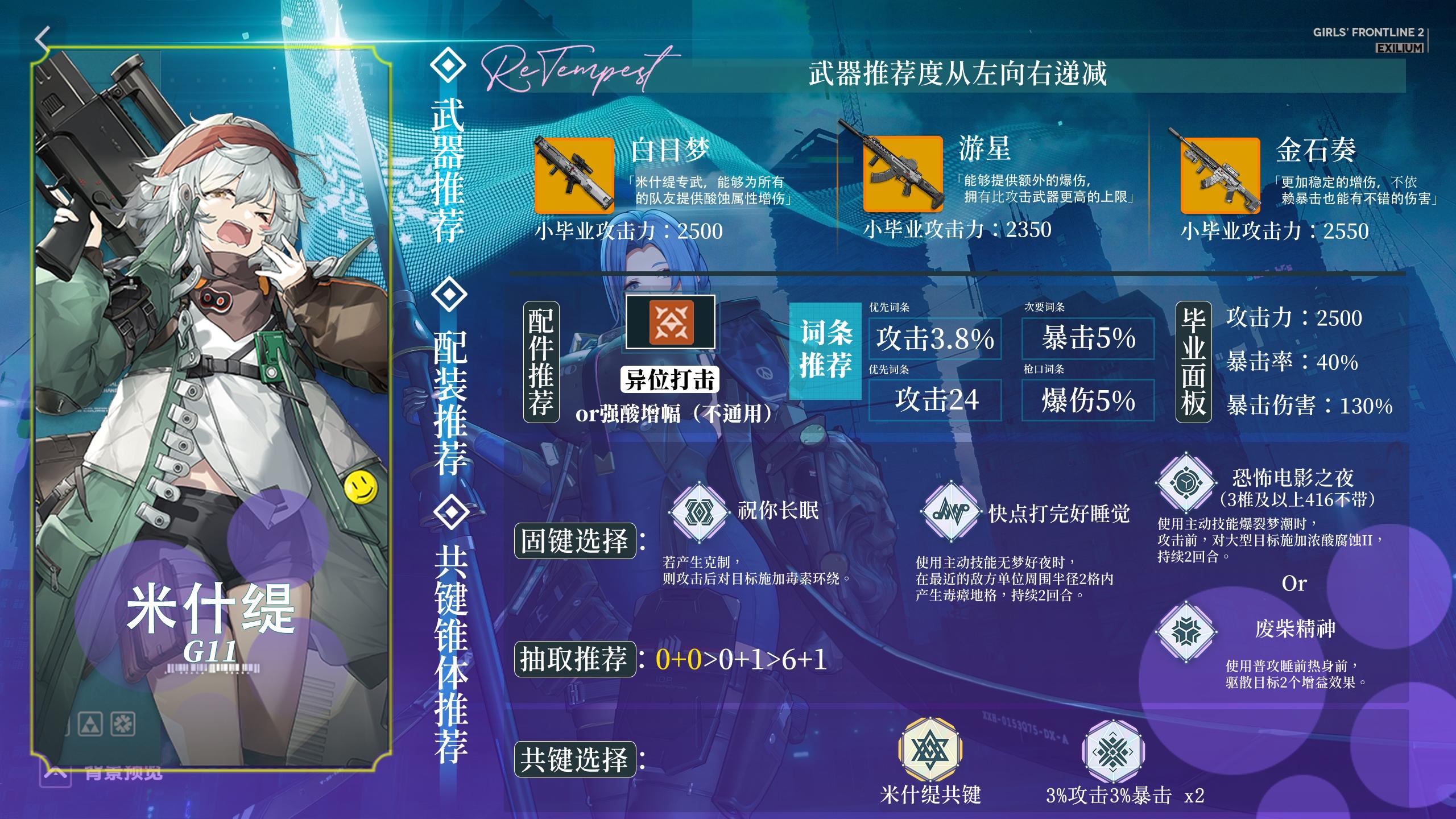 但是对于平民玩家一般只能选择2~3个体系进行培养,所以建议对已有体系进行补强。目前角色如果不是像维克托这种2+1完全体,抽取中间椎体的性价比就非常低了,所以如果补椎时无法达到以上的推荐节点,完全可以选择跳过。如果是单论开图鉴的优先度为:米什缇>杜莎妮>尼基塔>莱娅。武器的优先度和角色优先度一致,此外,以上角色武器精二的收益都极低,不推荐为了精炼二抽取武器。