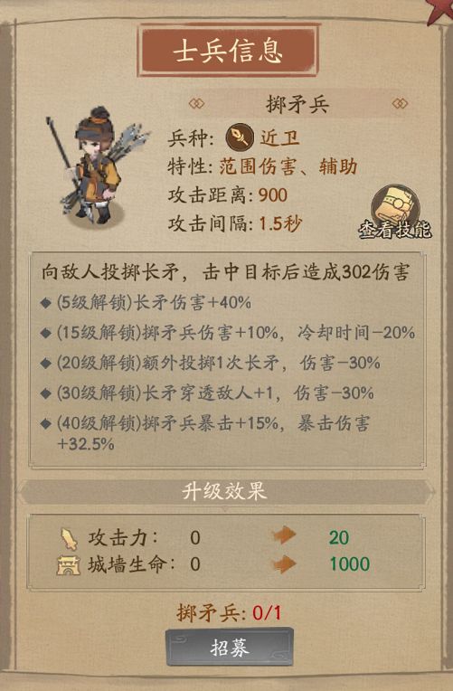 投掷长矛攻击敌方,拥有较稳定的输出能力。掷矛兵的核心技能对应不同的强化方向,战斗中不可共存。