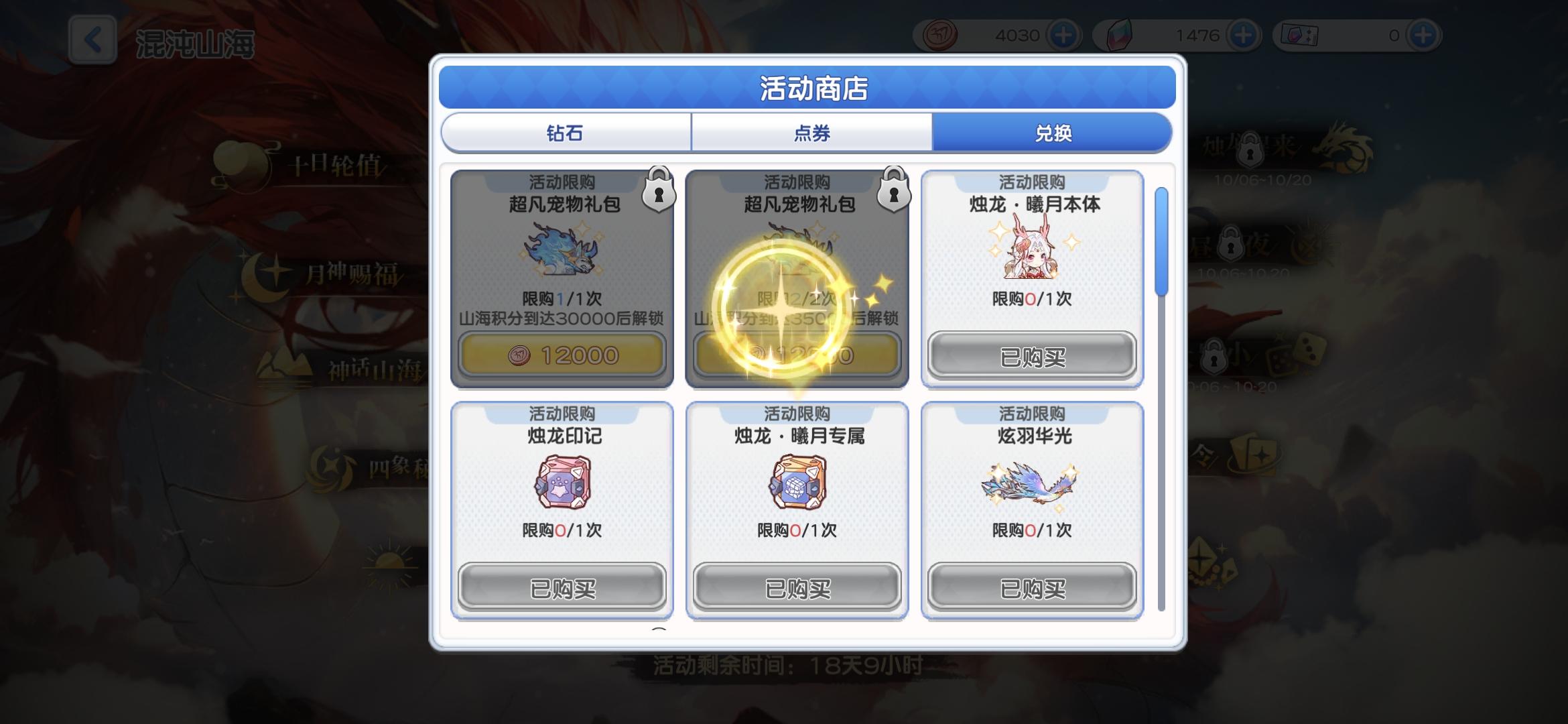 山海宝库活动中,你可以用钻石和活动积分兑换道具