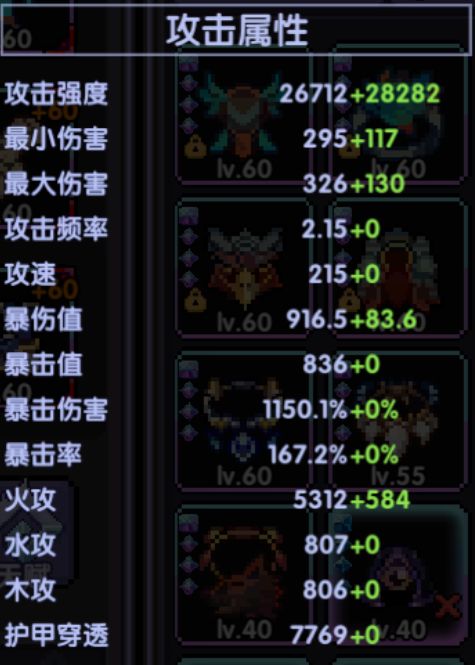大攻强、爆伤、属功、穿透、暴击值拉满,有多余梭哈小攻强。