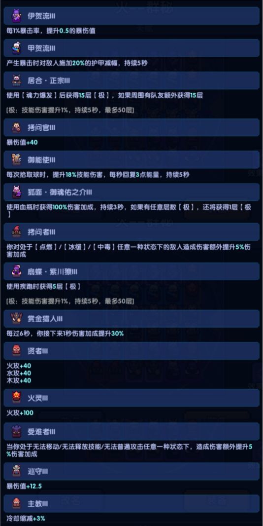 其余孔:优先选择阿嘉、素珍、小莫等火属性伤害加成和全伤魂珠,职业选择牧师>战士(根据自己面板选择忍者、游侠、法师魂珠补足穿透、攻速、冷却缩减)