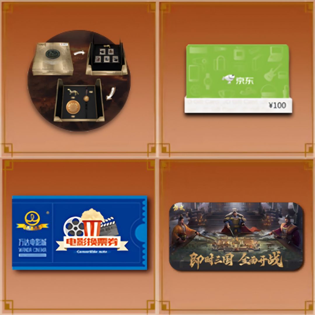 本次活动奖励丰厚,参与活动必得金铢*100,还有定制周边礼盒、京东卡、万达电影票等超多好礼等你来抢!