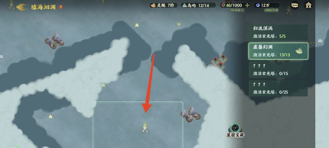 第十二座我们有俩条路可以去,第十座玄光塔下方有个航线可以直达,旁边那条礁石路我暂时还未打通,后续航船力多了再改动攻略