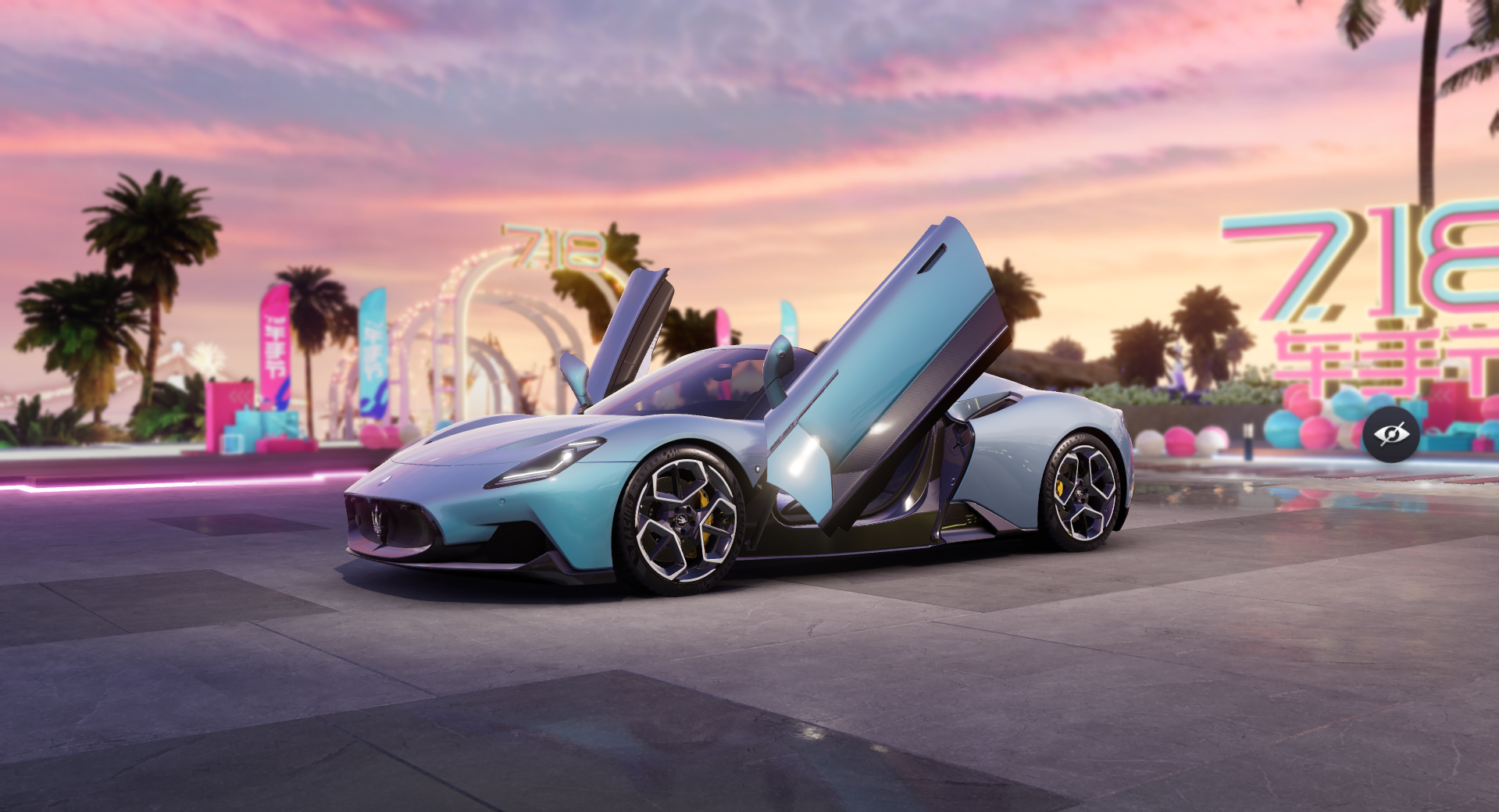 在游戏中所收录的就是玛莎拉蒂 MC20 Cielo敞篷版,“Cielo”在意大利语中被翻译为天空;它承袭MC20澎湃性能,硬顶敞篷更添几分意式浪漫,却又丝毫不影响“贴地飞行”的刺激爽感,让速度与优雅无缝相融!