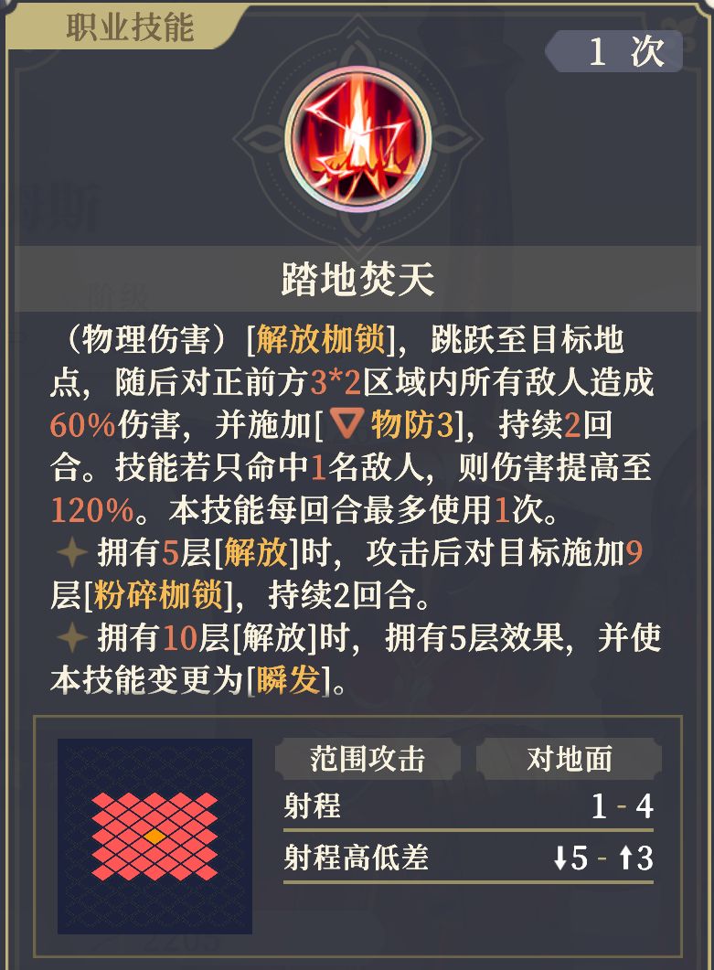 除此之外,“星陨之炎”身为范围攻击,却可以吃到背击和高地攻击加成,兼具了范围攻击和单体攻击的特点。可以说是集各路特性于一身的神奇技能。