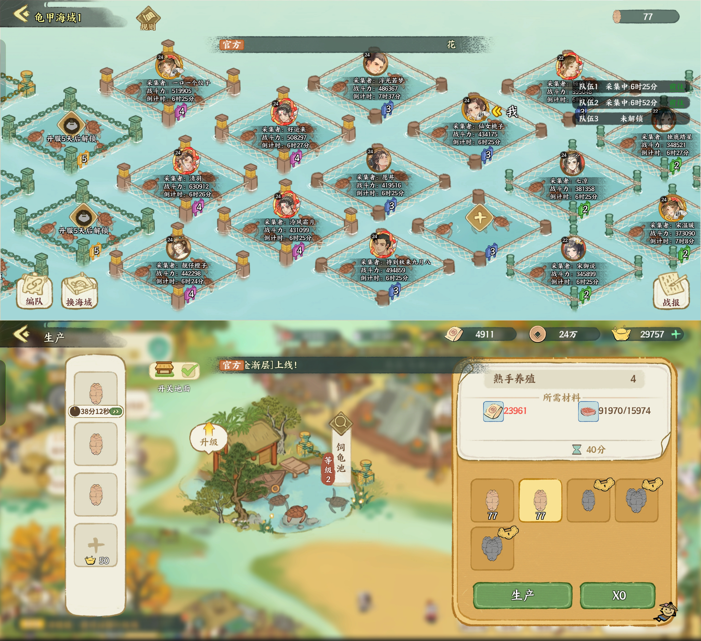 饲龟池建议进入商朝后优先升到2级,然后安排队列生产即可。
