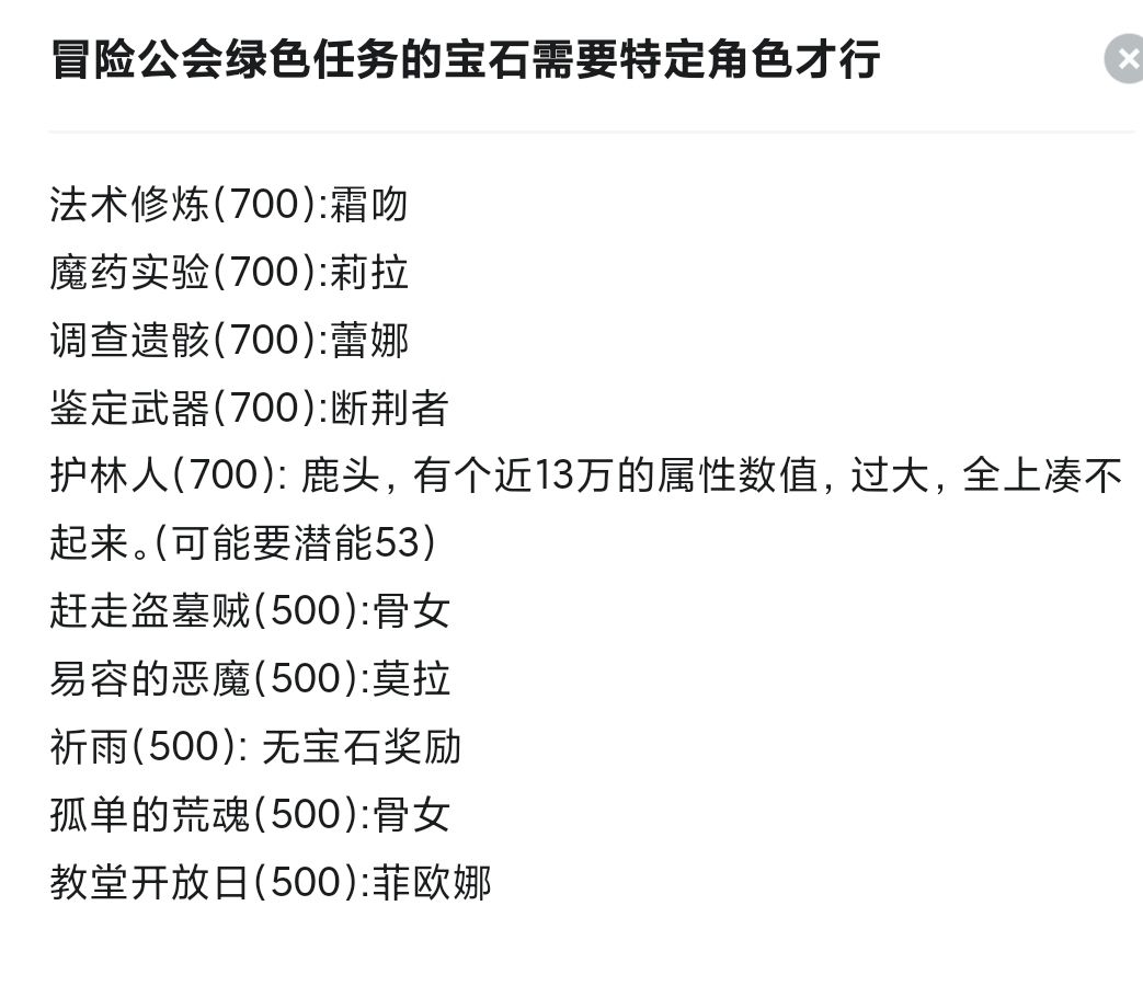 备注:冒险者公会的任务,有的显示有钻石,需要派遣相对应的角色,才能拿到钻石奖励,如图