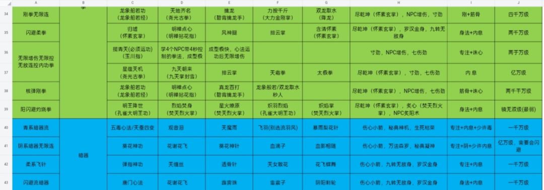 各种流派武学搭配以及战力分析