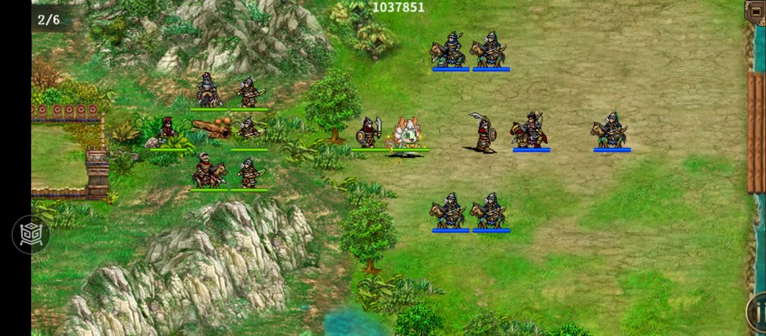 城里第三回合会出现一个百姓,二人组可以行动了。往下走。第四回合让贾诩靠近即可,张秀不用动,然后触发剧情,张秀行动杀左边那个,下回合杀上面那个即可。杀完这三会出城埋伏剧情。十回合就开始出击,这时候击杀山上的韩x和马腾就可以过关了。