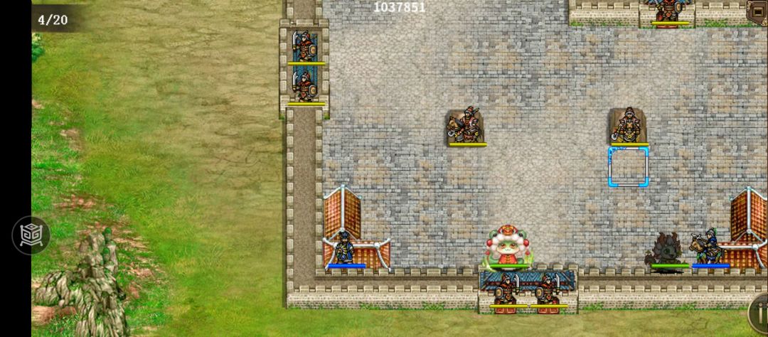 第三关,辅助装备有旗子和元宵灯笼的可以带带,没有也不强求。前三个回合只能待在城里不能动,主要是打山上那波。第一回合调整站位,站位如图。把枪兵全往左侧丢 基本没有用。